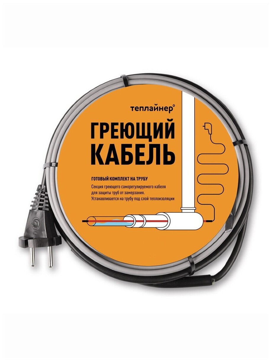 Греющий кабель саморегулирующийся на трубу 9 метров - 144 Вт. Теплайнер. Комплект.