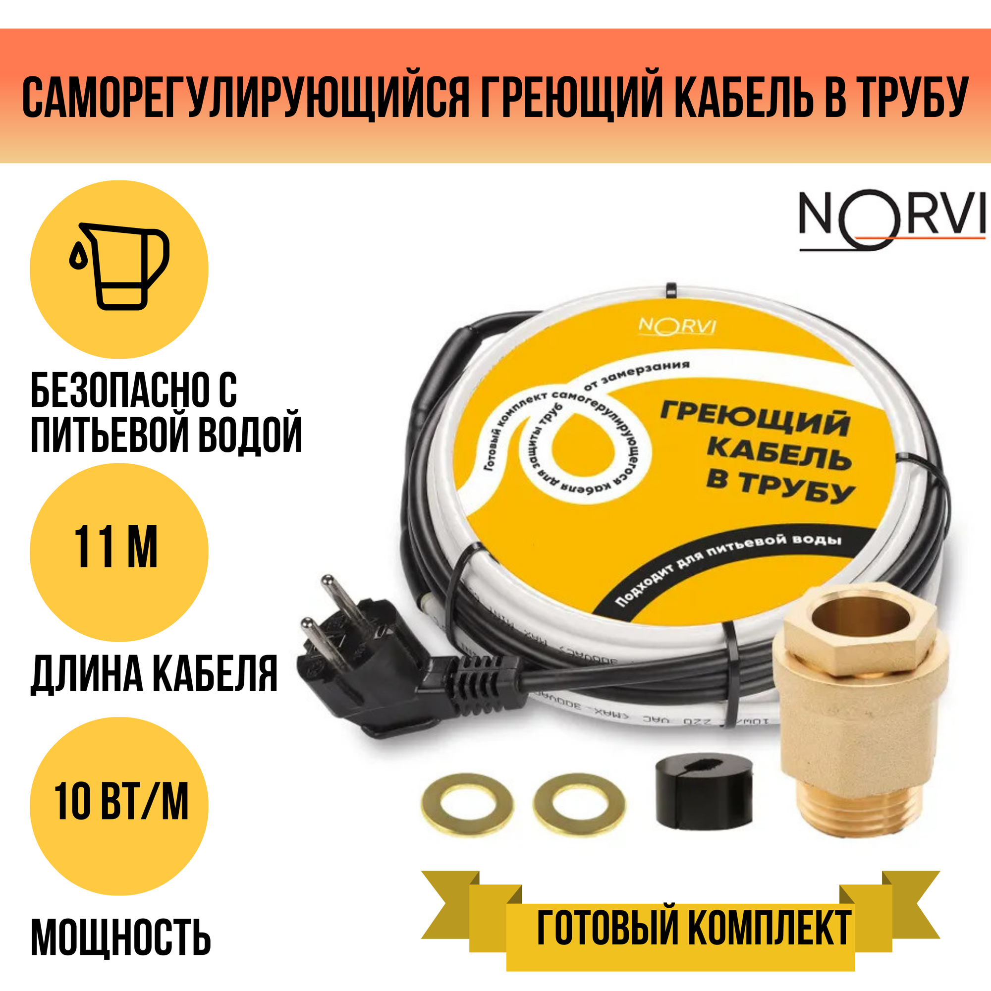Купить Греющий кабель NORVI, 110 Вт, 11 м, для обогрева внутри трубы