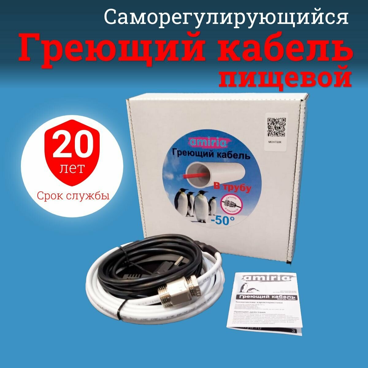Греющий саморегулирующийся кабель "Коттедж" готовый комплект в трубу 5 метров