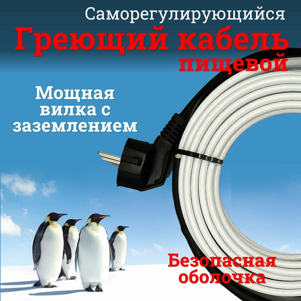 Греющий кабель обогрев люкс Греющий саморегулирующийся кабель в трубу 6 метров Обогрев Люкс с сальником