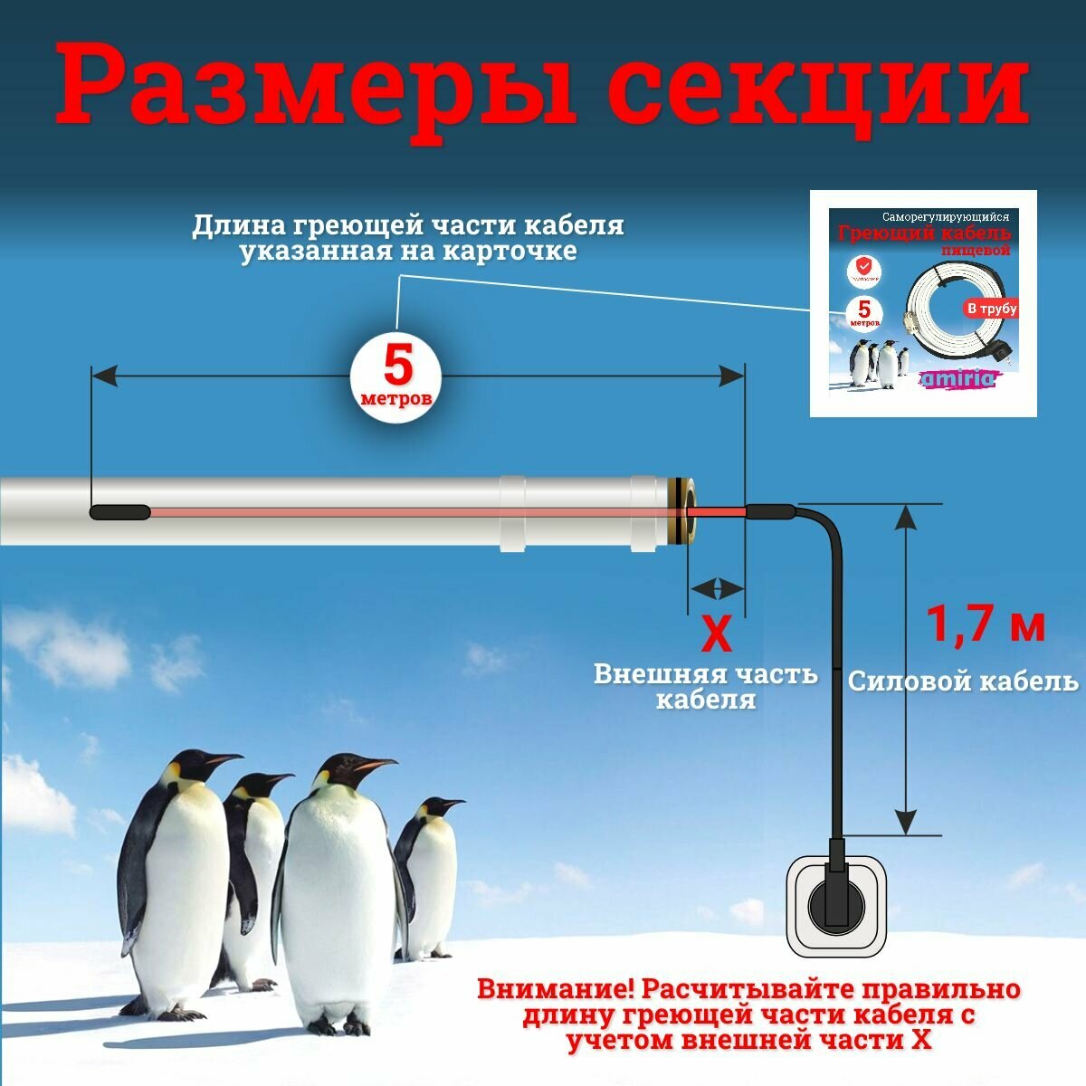 | Подробная комплектация | коробка, секция греющего кабеля, инструкция. |