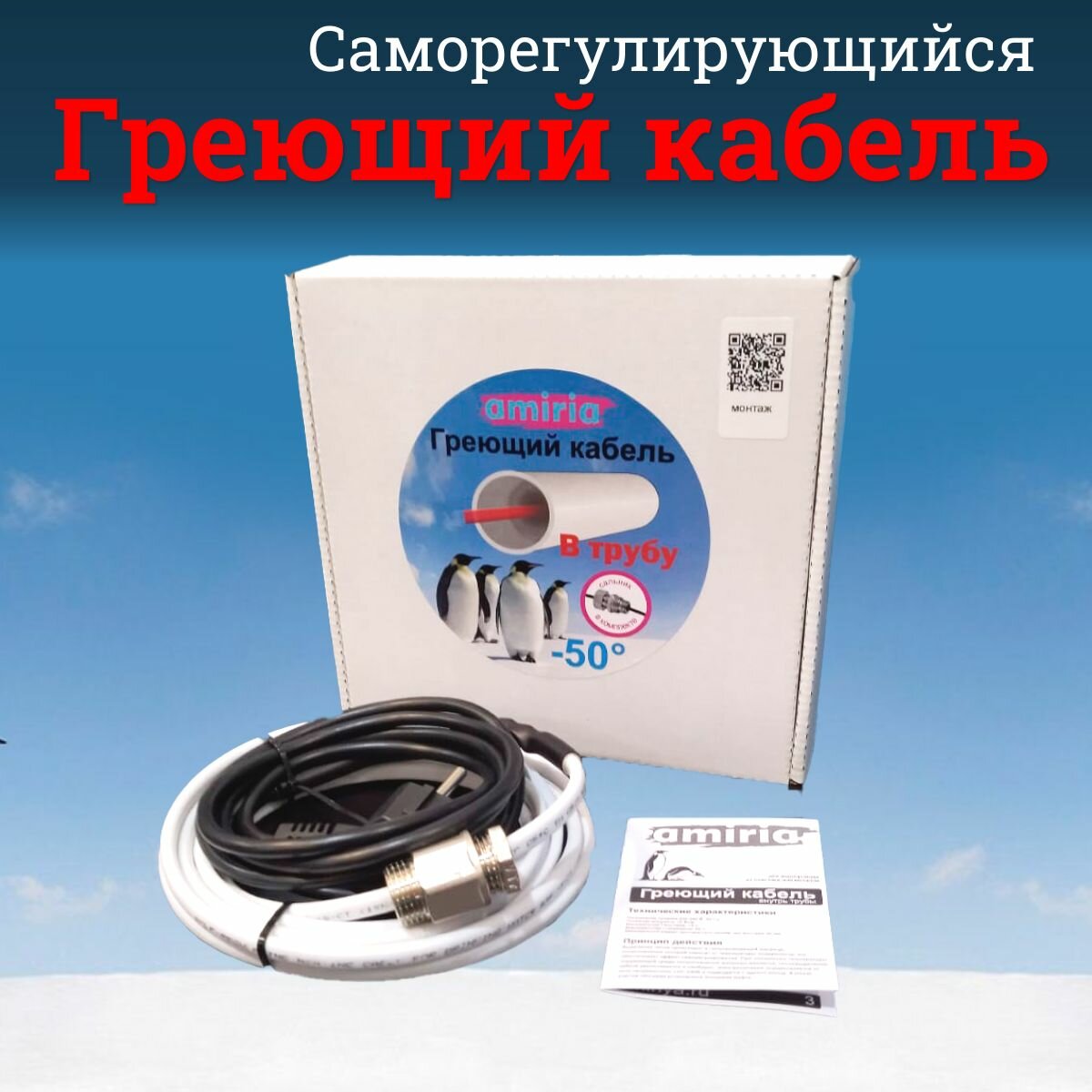 Греющий саморегулирующийся кабель "Коттедж" готовый комплект в трубу 3 метра
