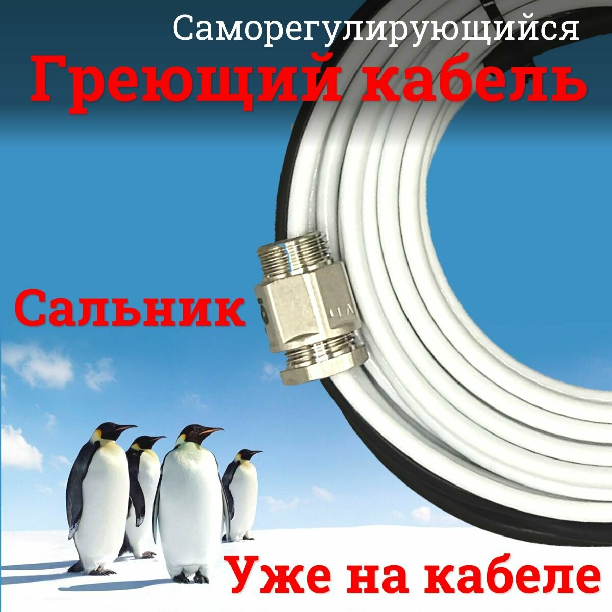 Греющий кабель обогрев люкс Греющий саморегулирующийся кабель в трубу 6 метров Обогрев Люкс с сальником