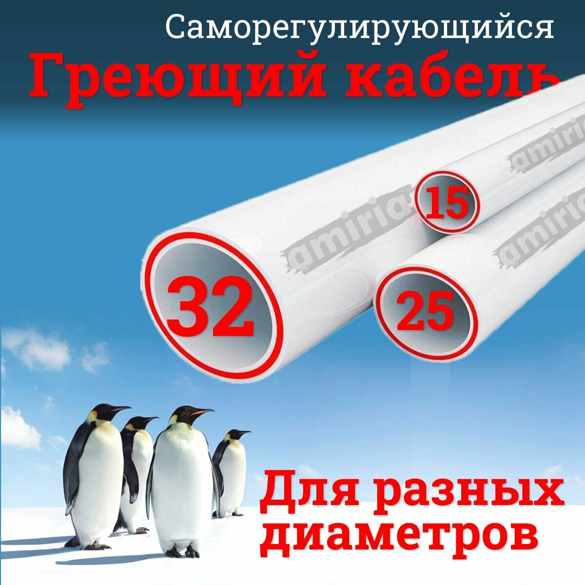 Греющий саморегулирующийся кабель "Коттедж" готовый комплект в трубу 15 метров