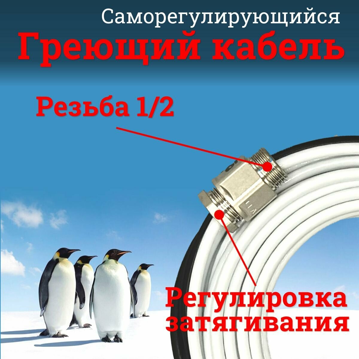 Греющий саморегулирующийся кабель "Коттедж" готовый комплект в трубу 1 метр
