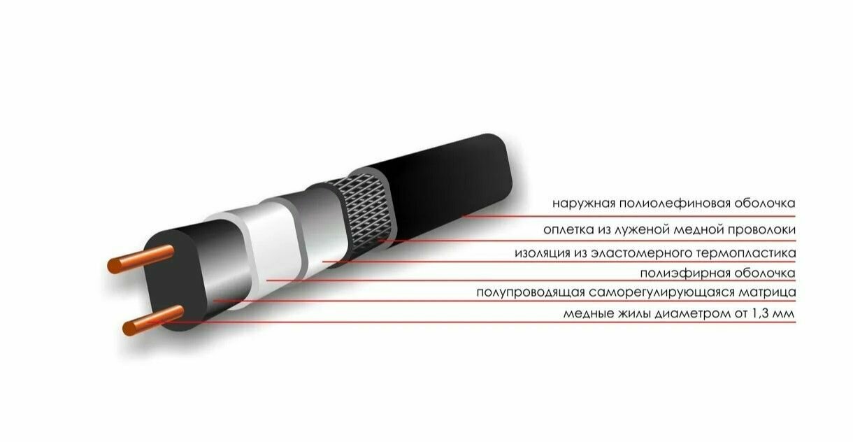 Греющий кабель саморегулирующийся Обогрев Люкс Standart для канализации 1 м