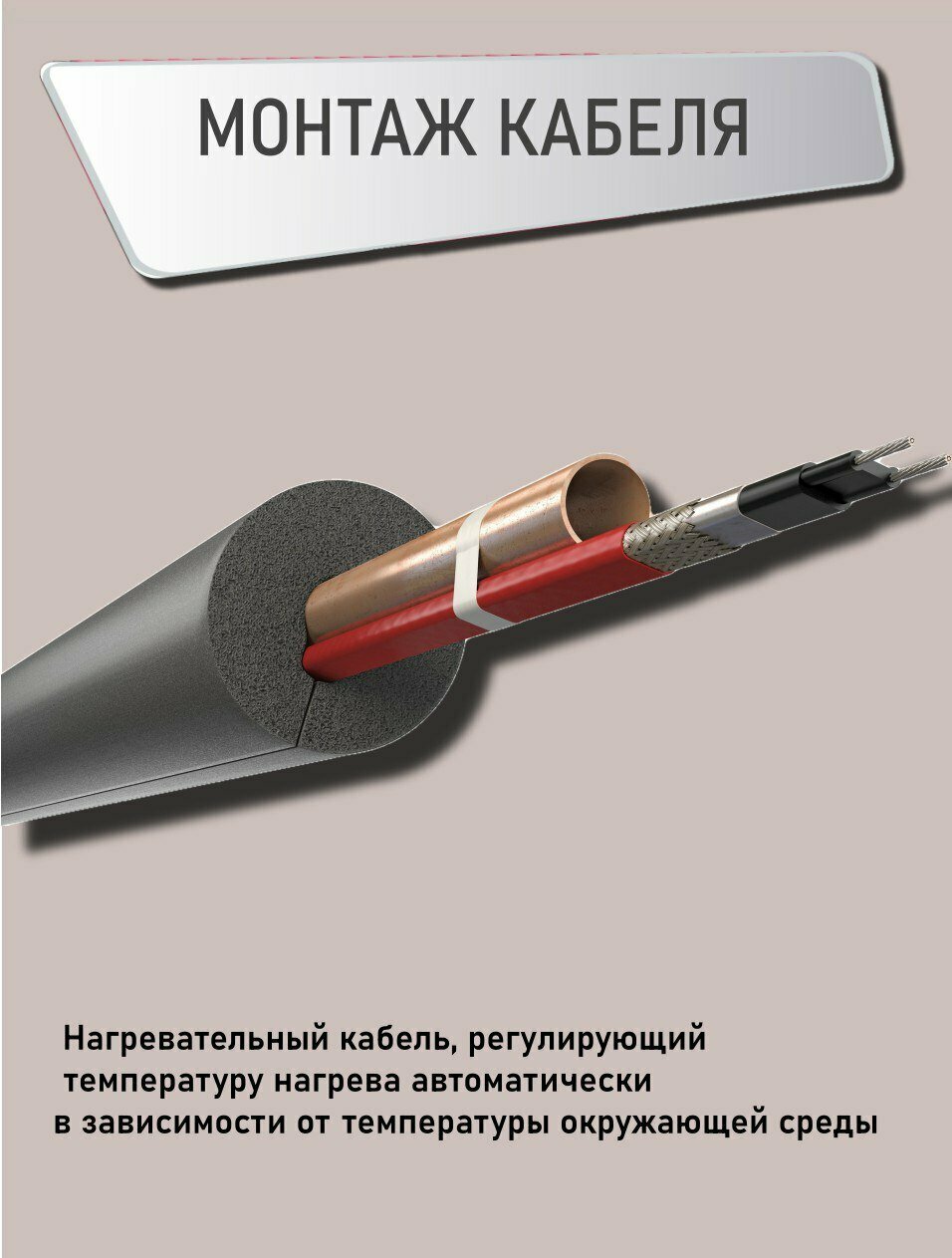 Греющий кабель обогрев люкс Греющий саморегулирующийся кабель в трубу 6 метров Обогрев Люкс с сальником