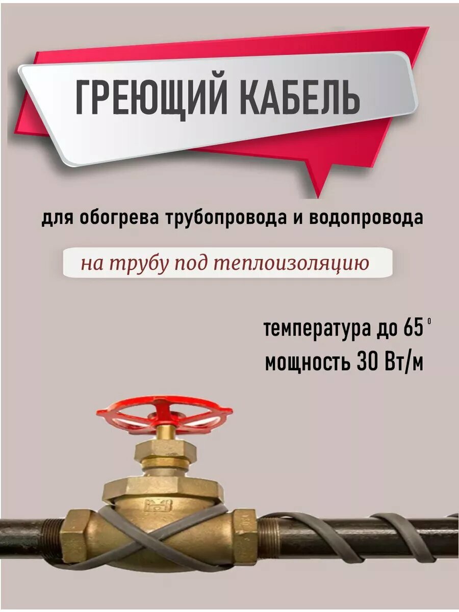 Греющий кабель обогрев люкс Греющий саморегулирующийся кабель в трубу 6 метров Обогрев Люкс с сальником