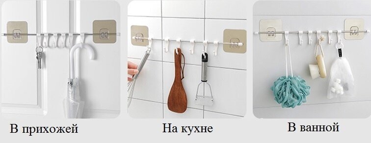 Держатель планка с крючками для кухни и ванной, 6 крючков интересное: