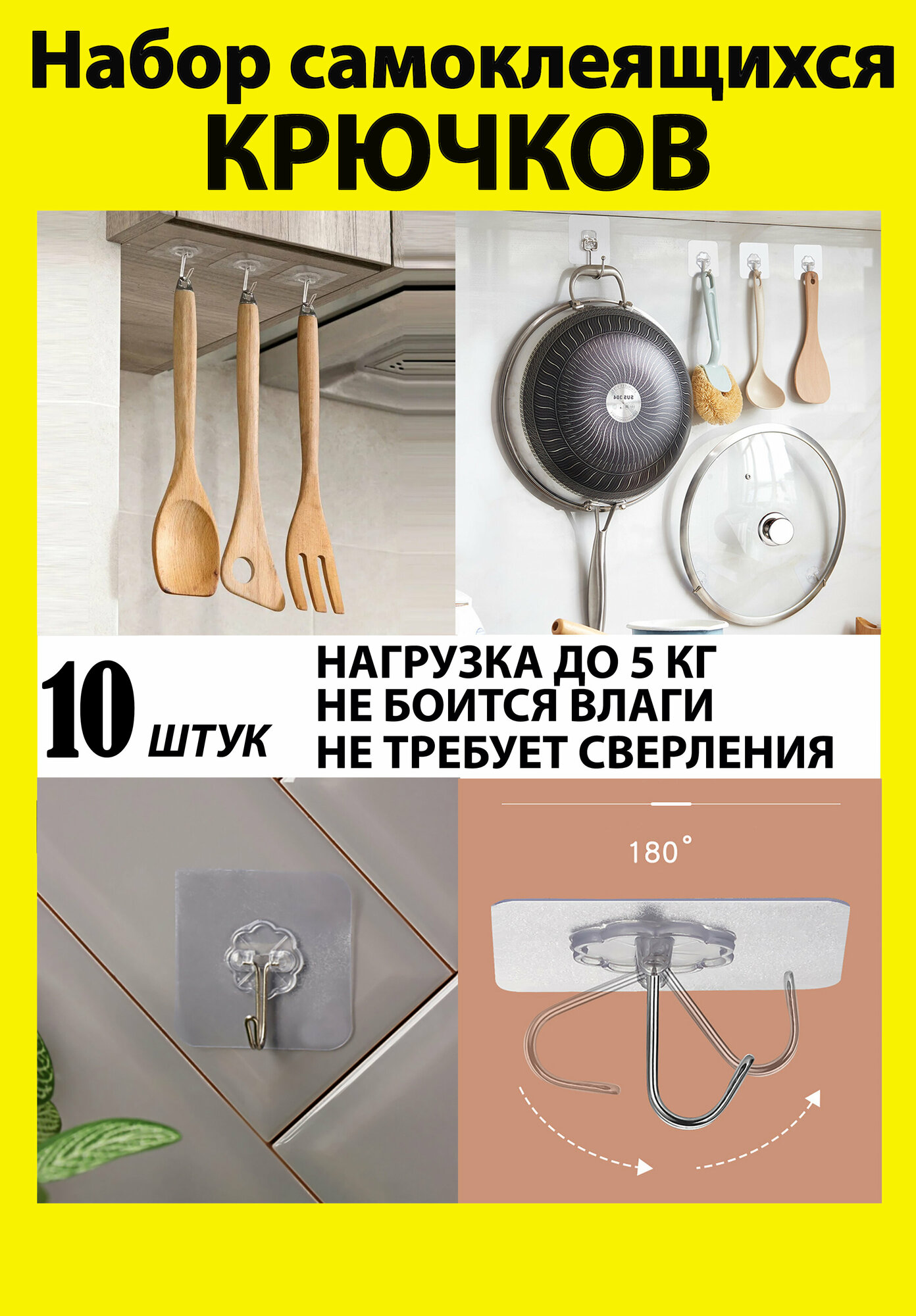 Крючки настенные самоклеющиеся прозрачные для ванной и кухни - набор 10 шт. интересное: