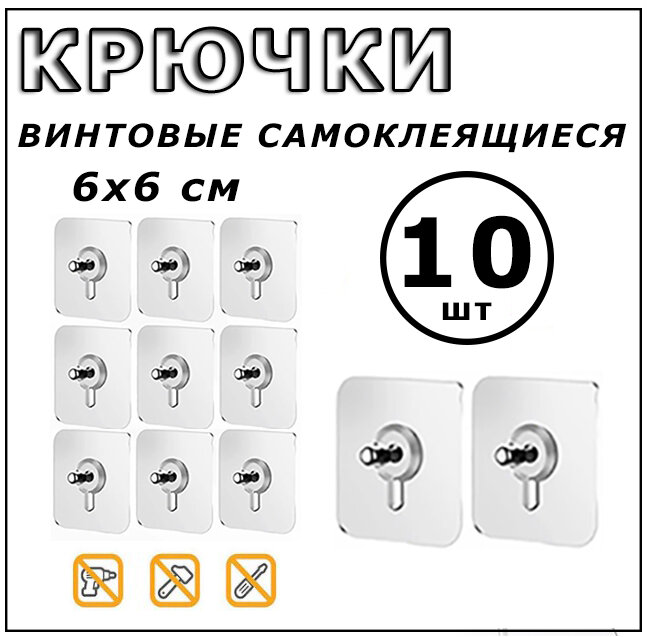 Крючки держатели для картин и полок самоклеящиеся, набор из 10шт. интересное: