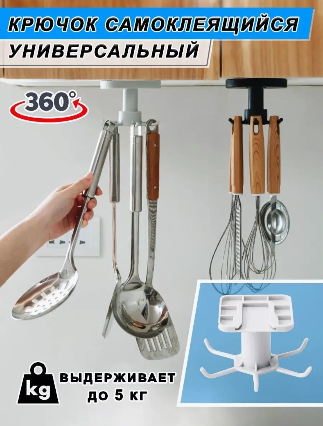 Крючок самоклеящийся для кухни крутящийся серый интересное: