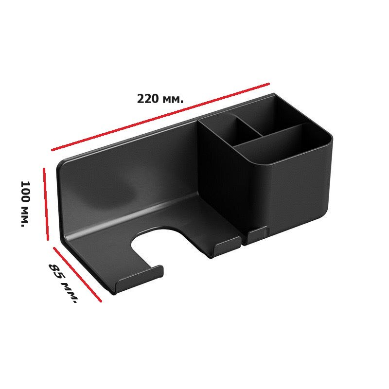 Полка для фена bLESkYOU, ЧЁРНЫЙ, с крючком и органайзером, пластик, настенный, самоклеящийся, без сверления.