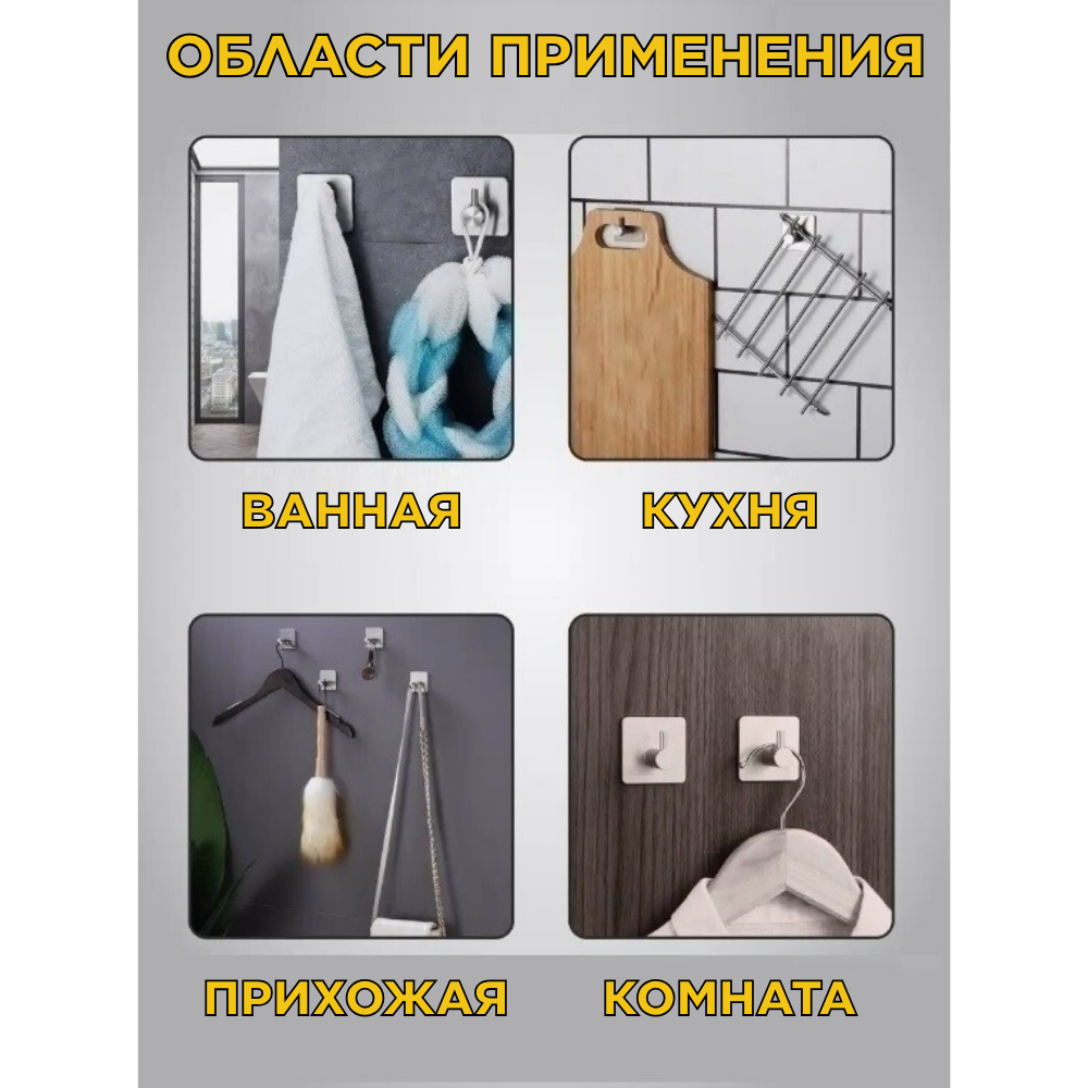 Купить Крючок самоклеющийся 4шт. универсальный из нержавеющей стали/серый-металлик/квадратный