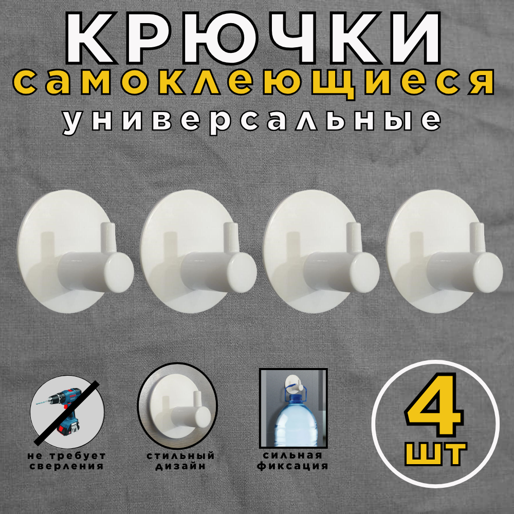 Купить Крючок самоклеющийся 4шт. универсальный из нержавеющей стали/белый/круглый