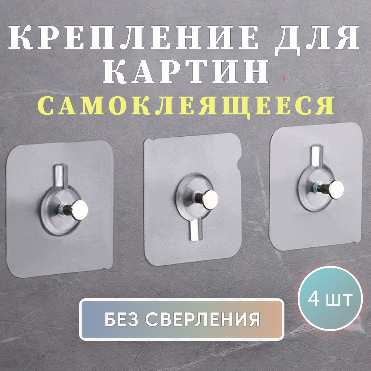 Крючки самоклеющиеся, крепление для картин без сверления самоклеящееся, 4 шт. интересное: