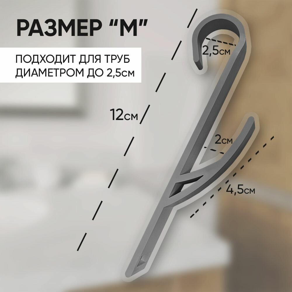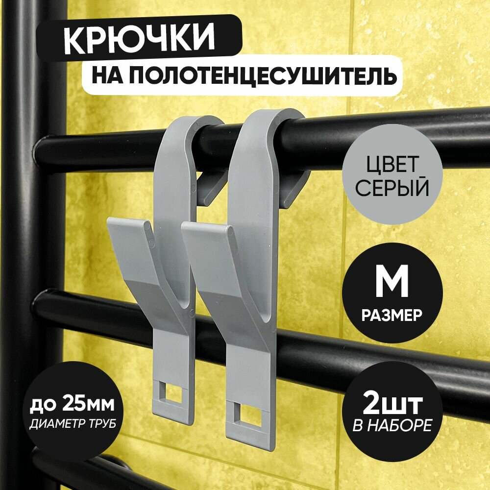 Крючки для ванной 2 шт. серые большие для труб диаметром до 3,5 см на полотенцесушитель пластиковый