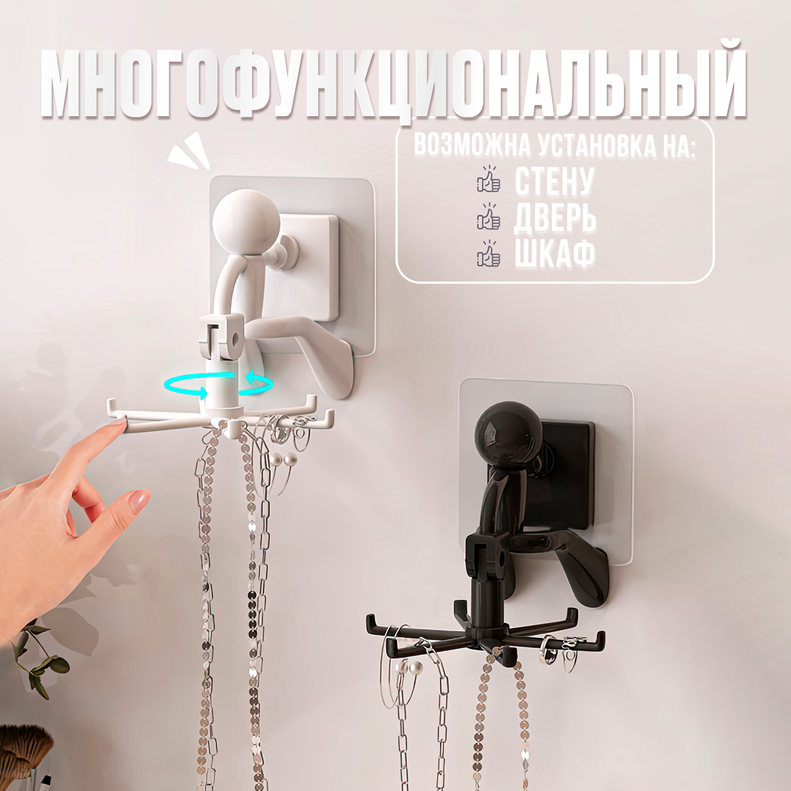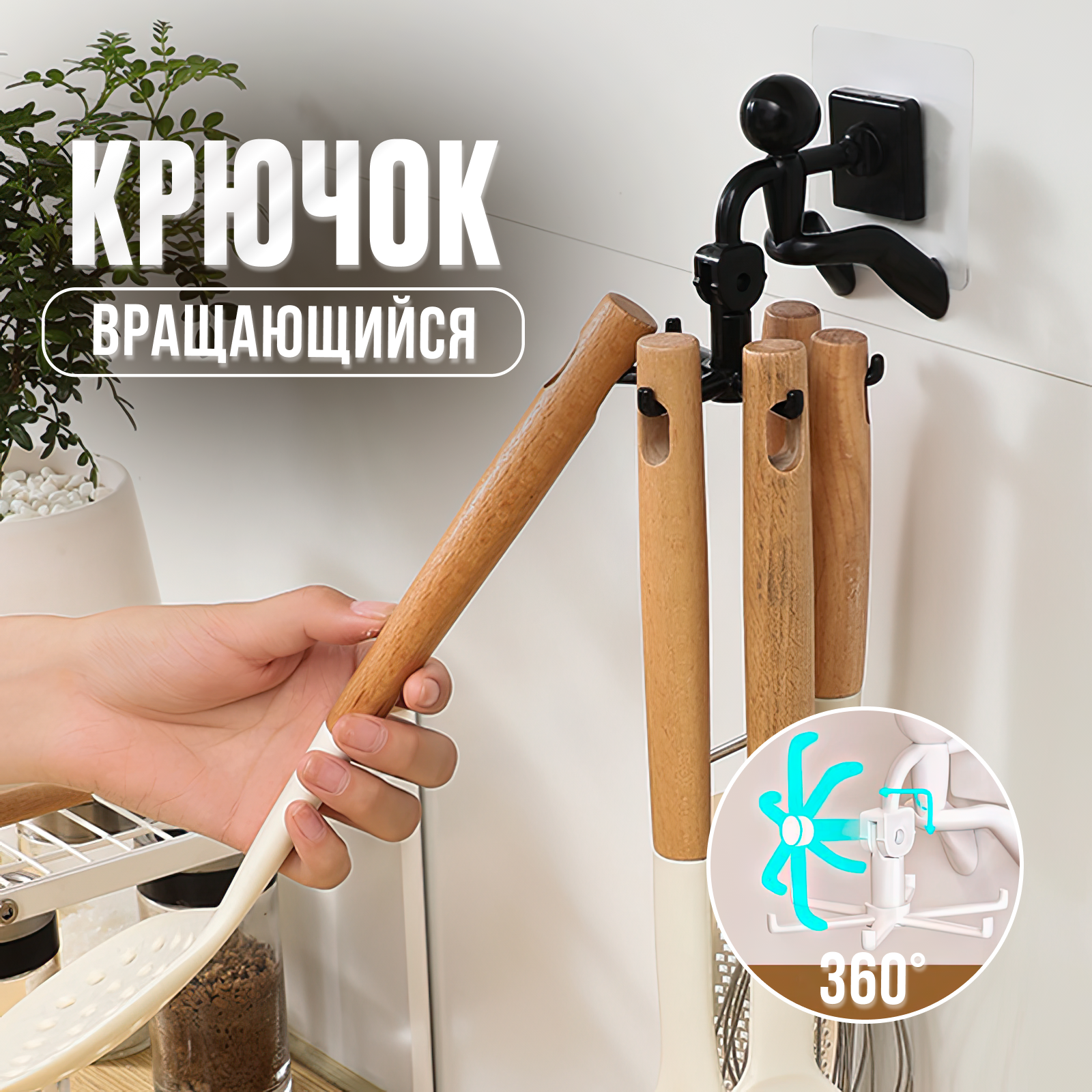 Крючок черный самоклеящийся настенный для кухни вращающийся, универсальный человек интересное: