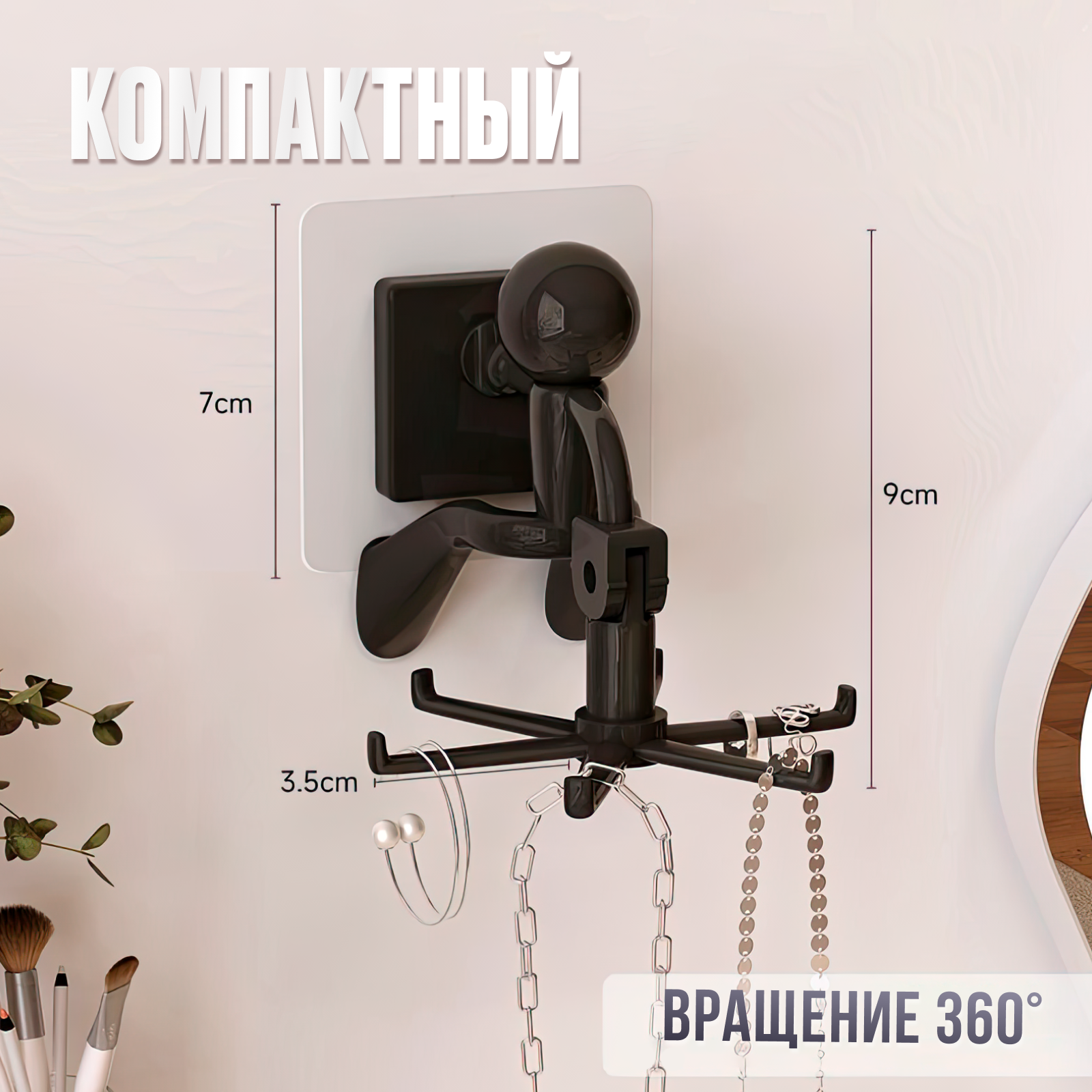 Купить Крючок черный самоклеящийся настенный для кухни вращающийся, универсальный человек