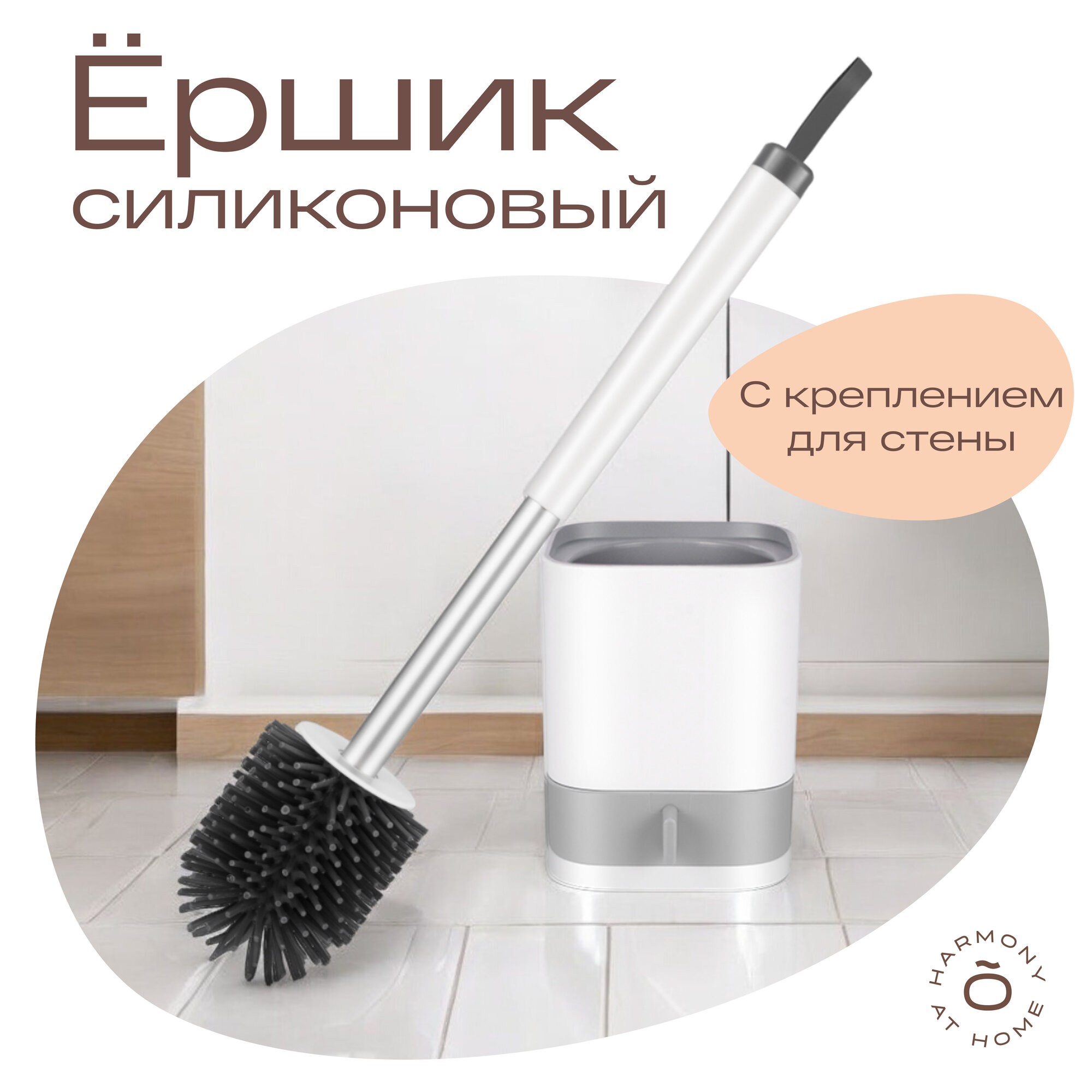 Ершик для унитаза напольный силиконовый/TOHOMU/Ершик для туалета/настенный/белый/серый