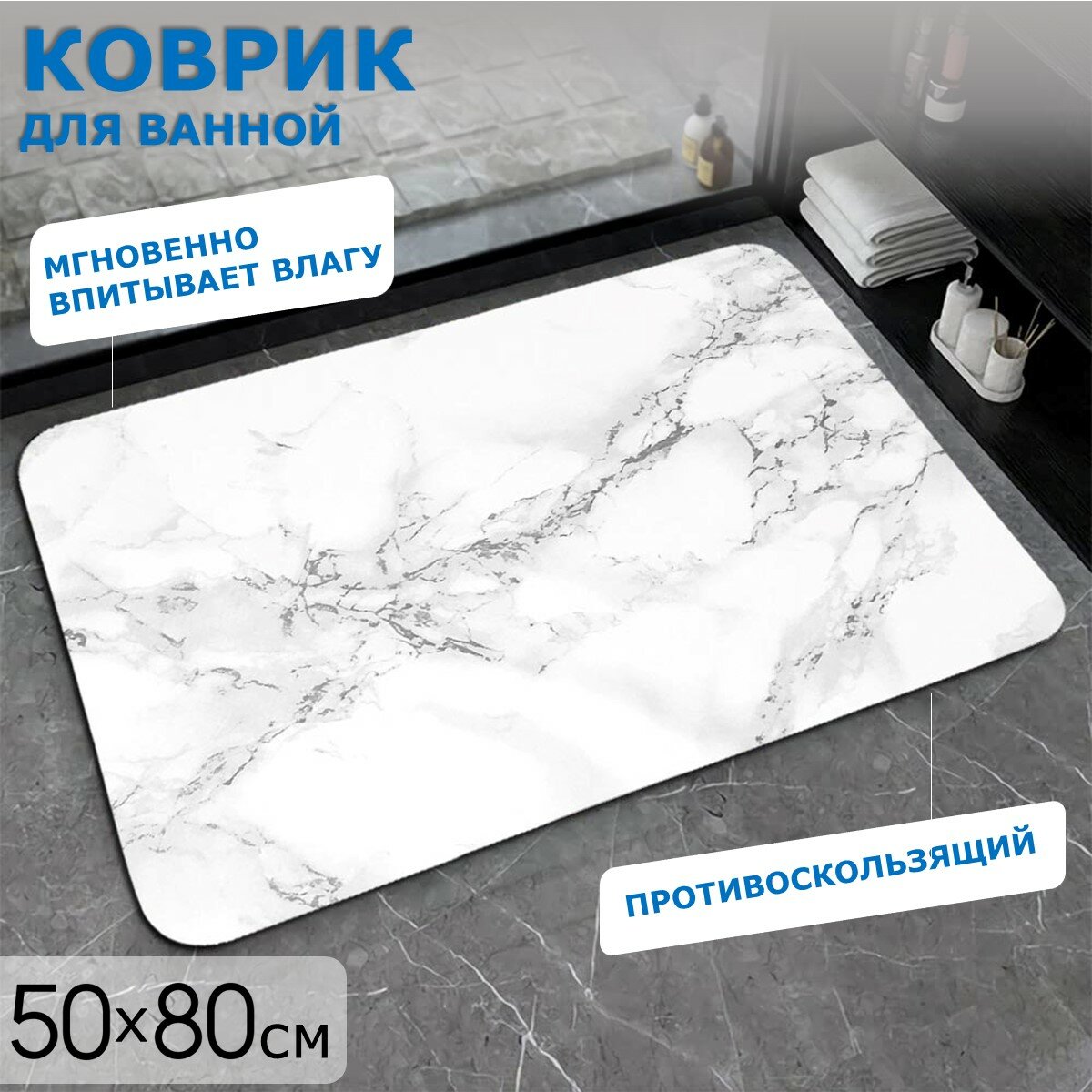 СохранитьКоврик для ванной и туалета Ridberg Marble 50*80 см, влаговпитывающий, быстросохнущий, противоскользящий, прикроватный коврик, белый интересное: