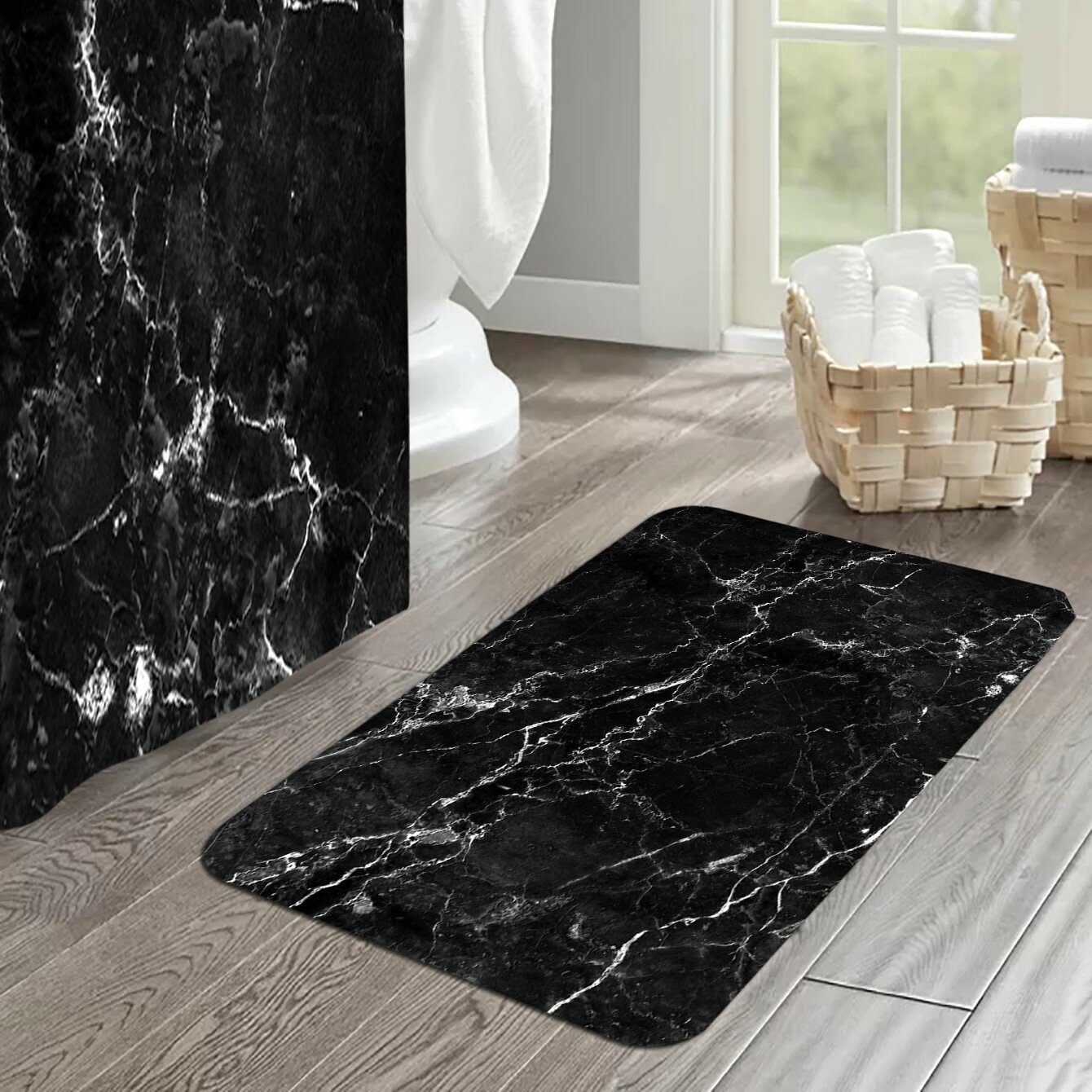 Купить Коврик для ванной и туалета Ridberg Marble 50*80 см, влаговпитывающий, быстросохнущий, противоскользящий, прикроватный коврик, черный
