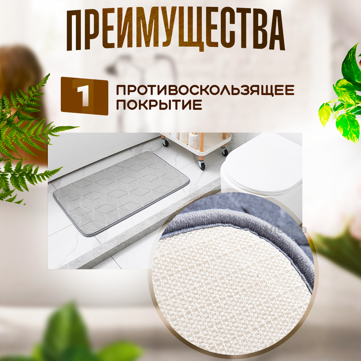 Коврик для ванной комнаты и туалета/ Набор противоскользящий ковриков 2 шт (50х80 см), (50х40см)-серый интересное: