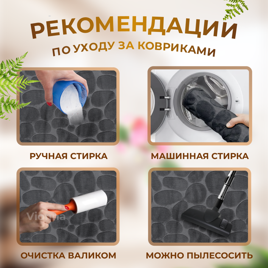 Коврик для ванной комнаты и туалета/ Набор противоскользящий ковриков "Камни" 2 шт (50х80 см), (50х40см),темно-серый интересное: