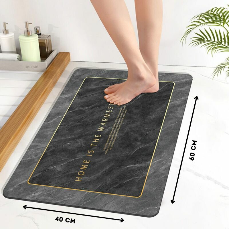 Противоскользящий коврик для ванной, быстро впитывающий влагу, черный мраморный