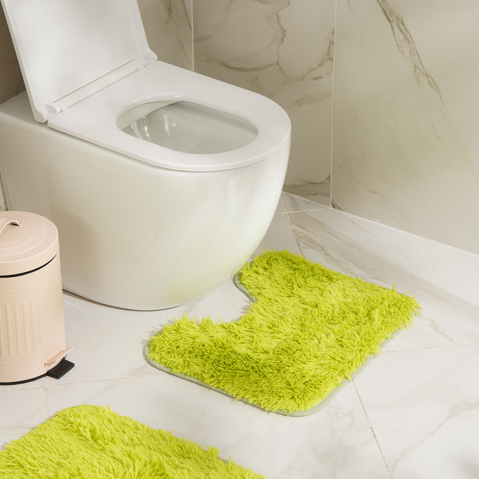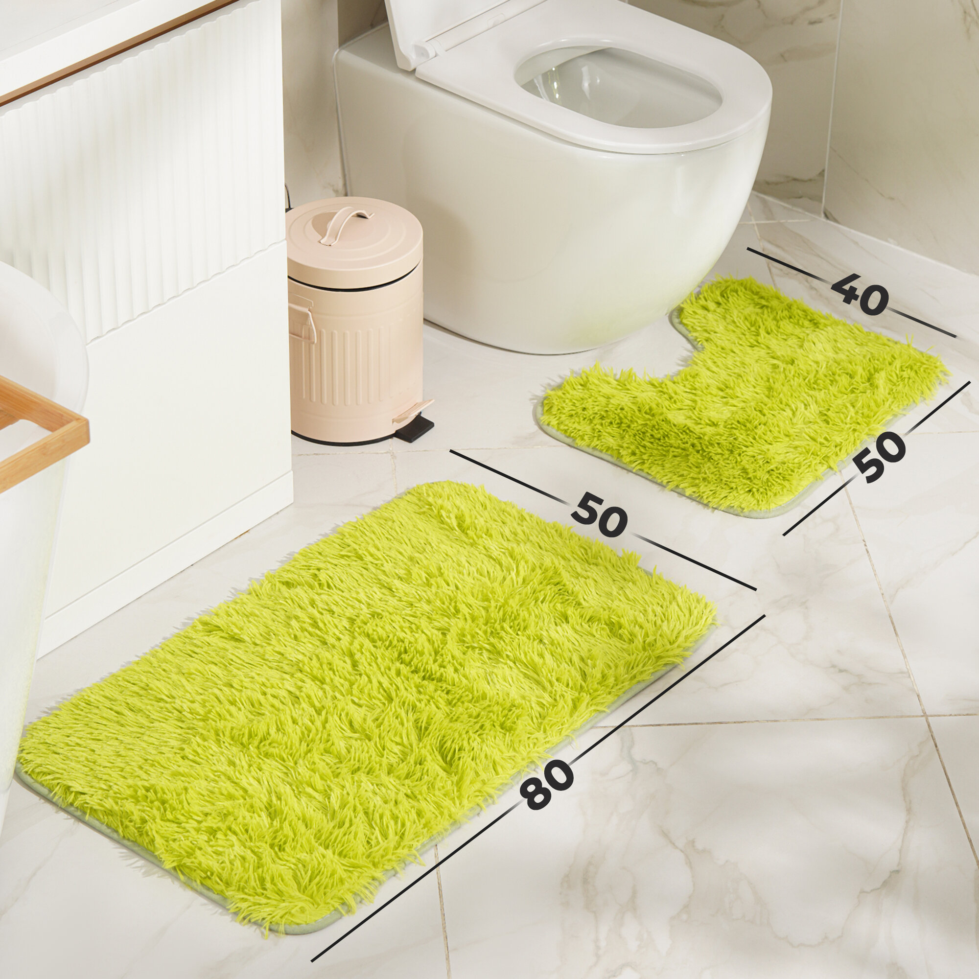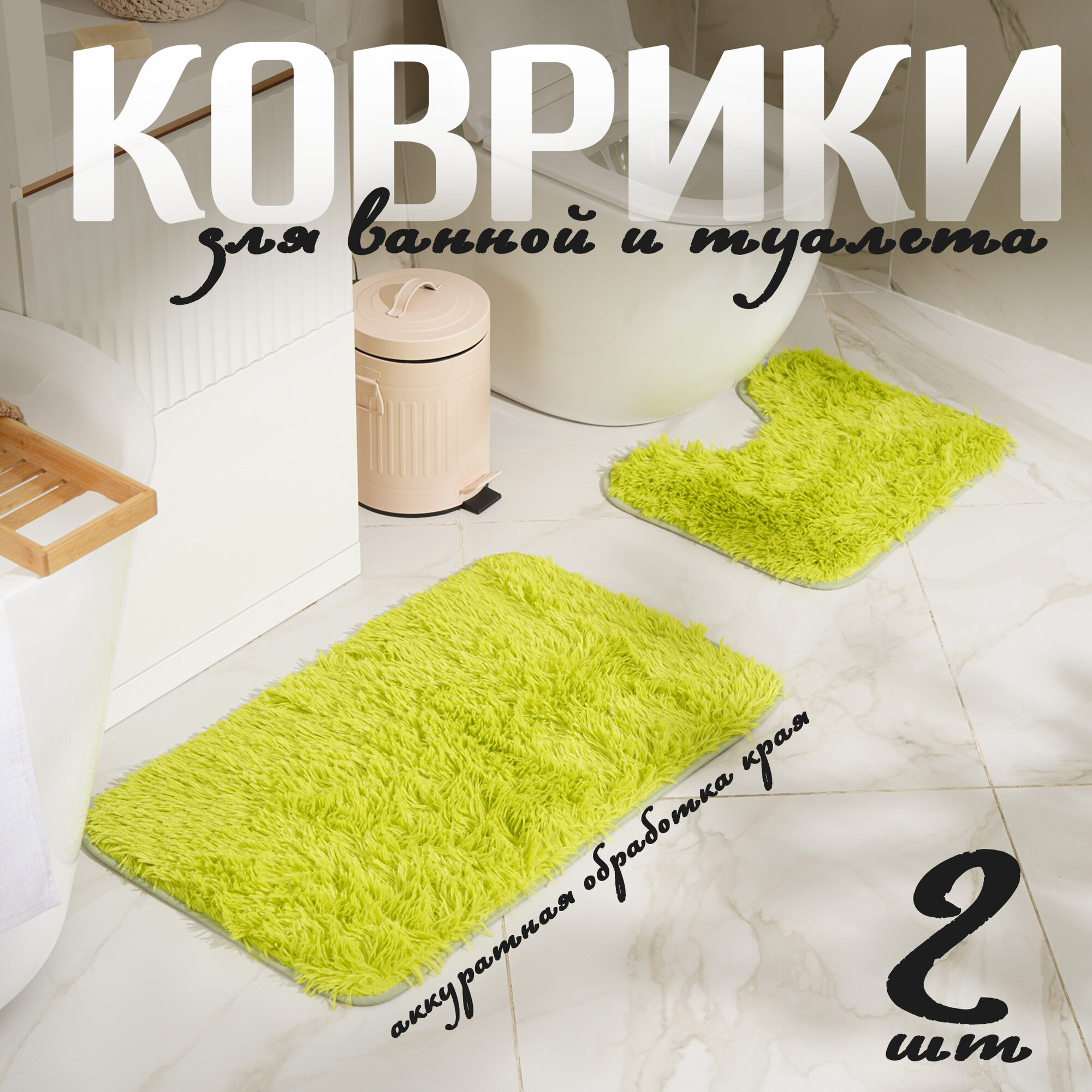 Купить Коврики для ванной и туалета, 2 предмета: 40×50, 50×80 см, цвет зелёный