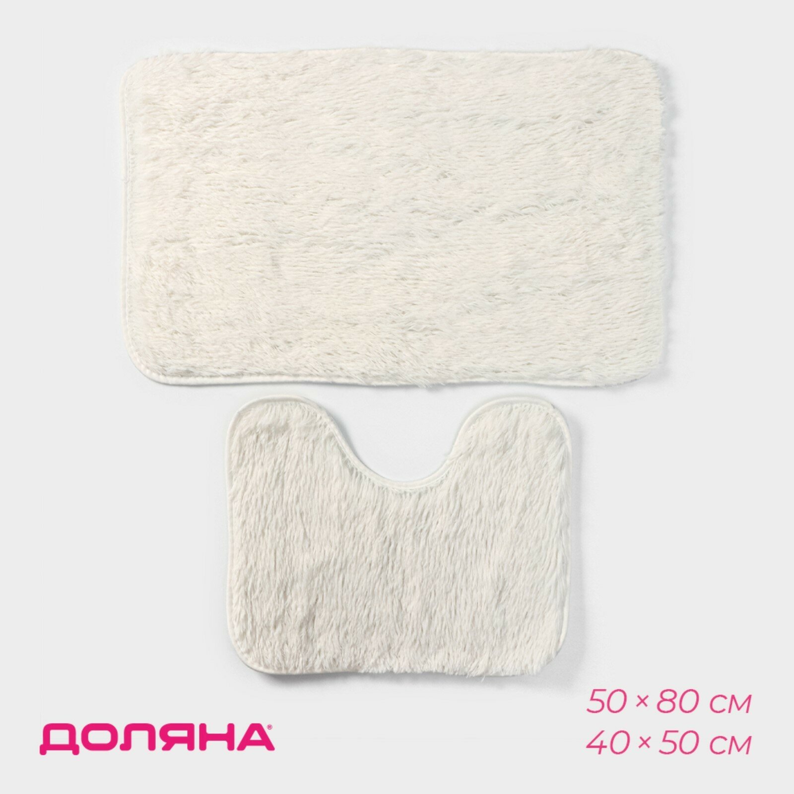 Купить Набор ковриков для ванной и туалета Доляна «Пушистик», 2 шт: 40×50, 50×80 см, цвет белый