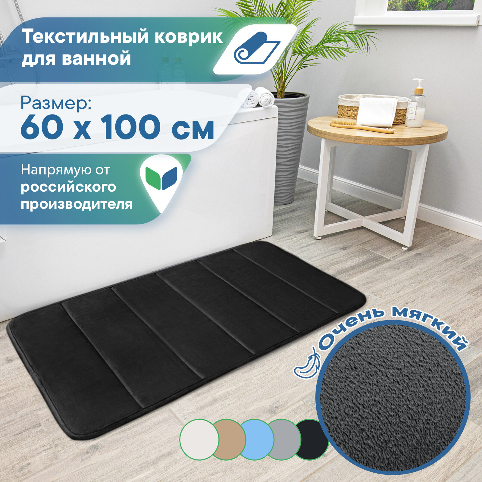 Купить Коврик для ванной комнаты и туалета 60х100 см VILINA мягкий текстильный противоскользящий ворсовый влаговпитывающий однотонный "Велюр" чёрный