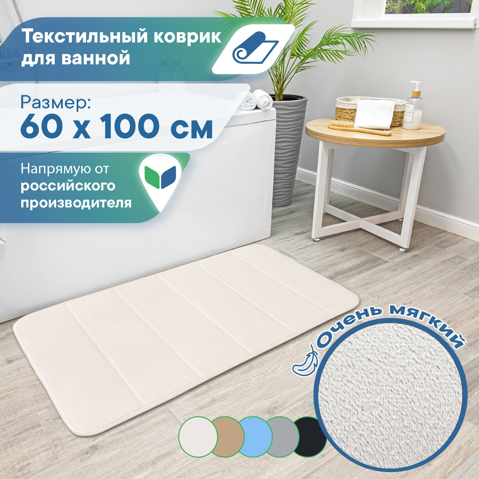 СохранитьКоврик для ванной комнаты и туалета 60х100 см VILINA мягкий текстильный противоскользящий ворсовый влаговпитывающий однотонный "Велюр" светло-бежевый интересное: