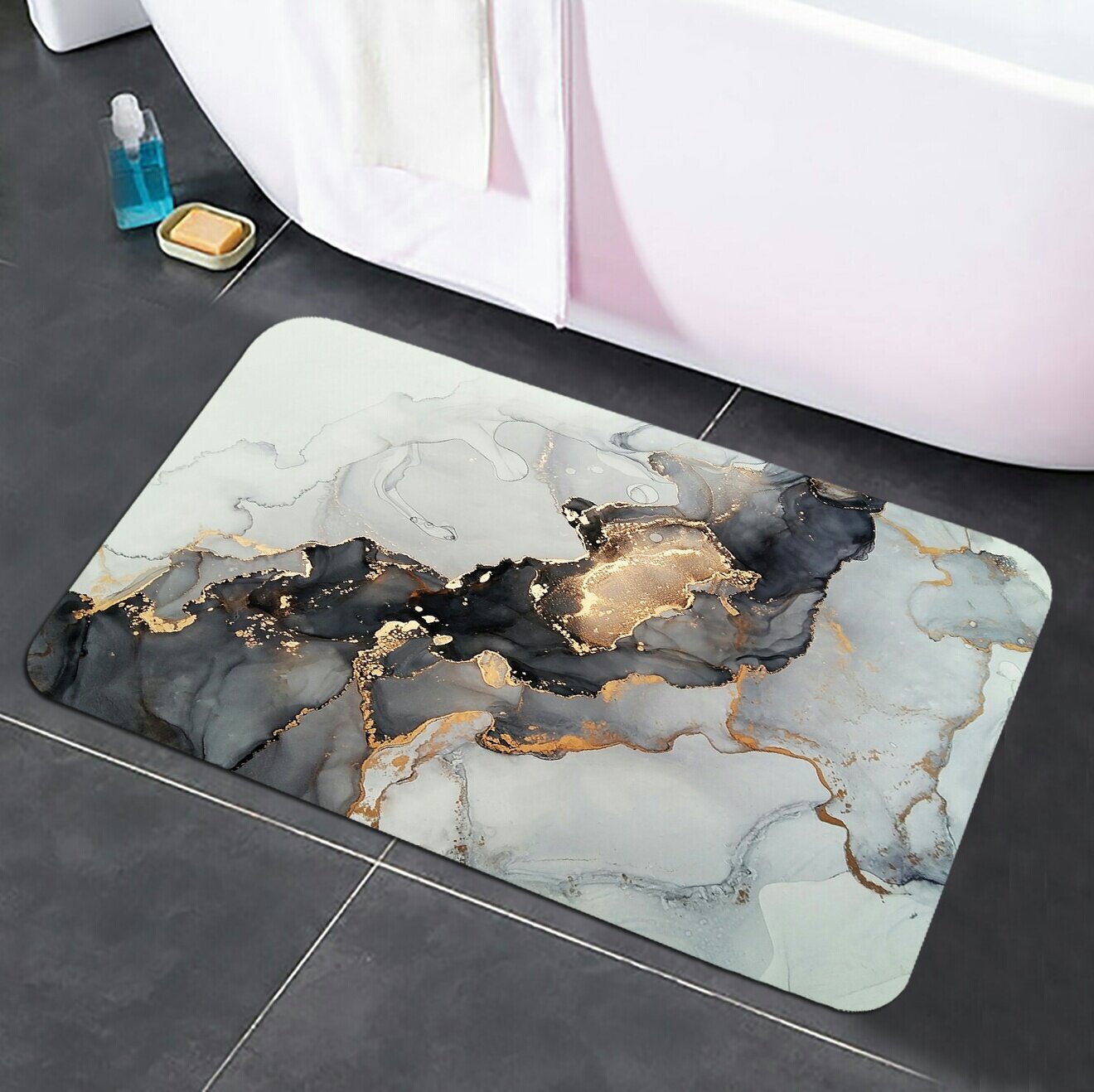 СохранитьКоврик для ванной Kaksa "Мрамор черный" 45х75 см, противоскользящий, камень интересное: