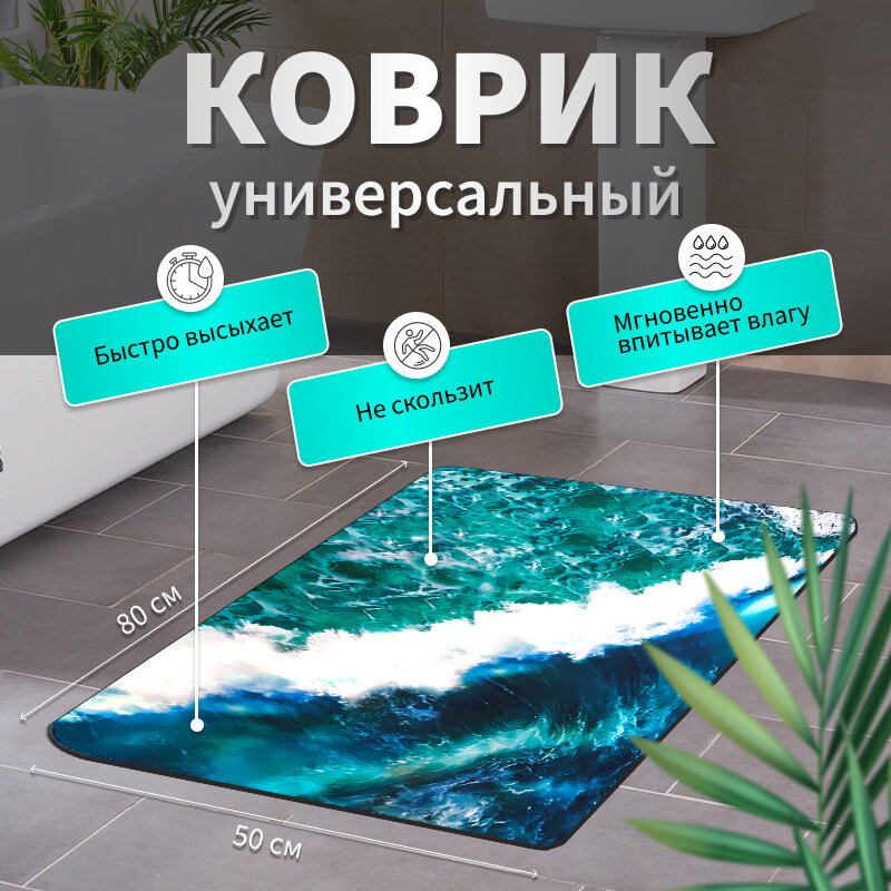 СохранитьКоврик для ванной и туалета, влаговпитывающий, противоскользящий,Волна 50*80см интересное: