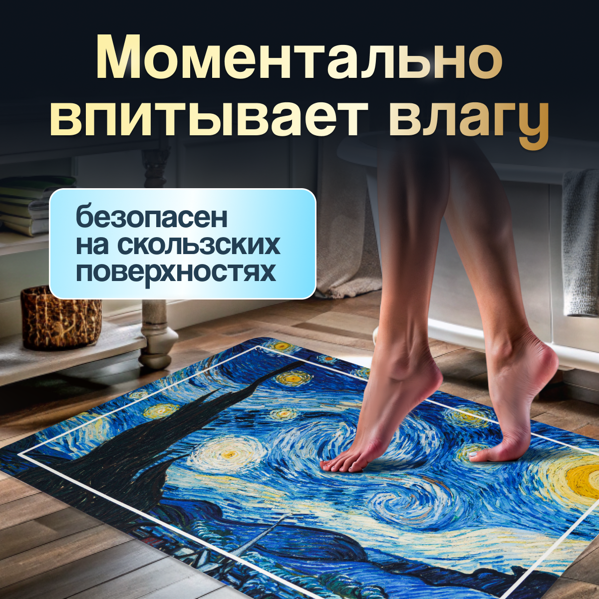 СохранитьКоврик для ванной и туалета, влаговпитывающий, противоскользящий, Ван Гог 50*80см интересное: