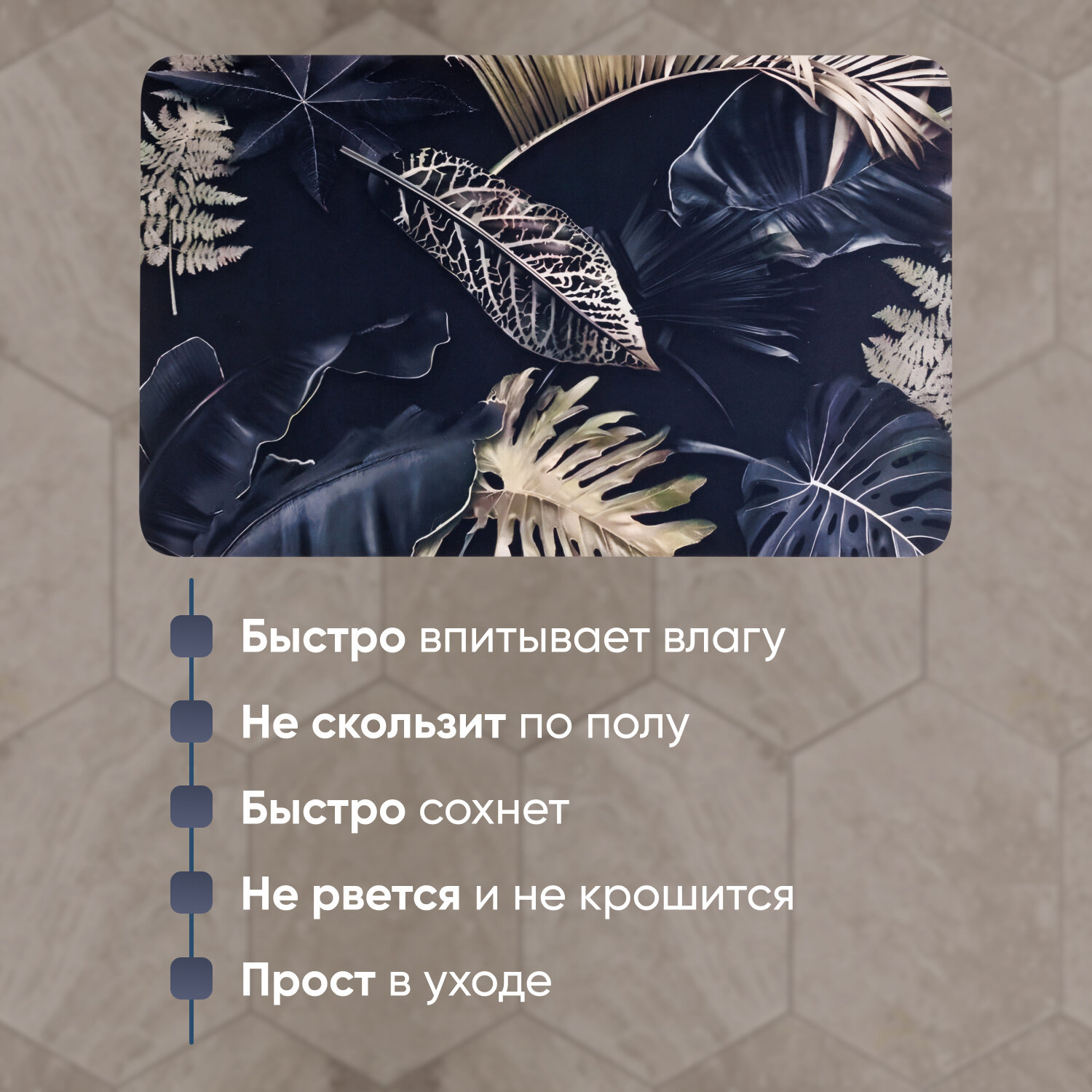 СохранитьКоврик для ванной и туалетной комнаты "Листья", 50х80 см, черный, зеленый, Папоротник интересное: