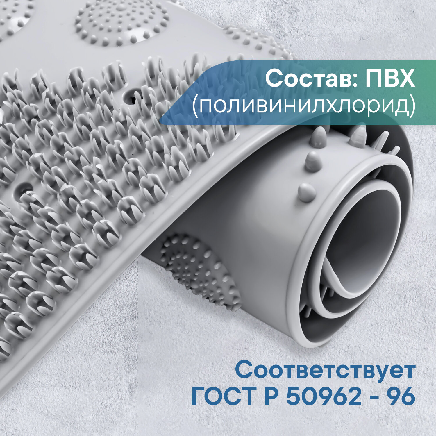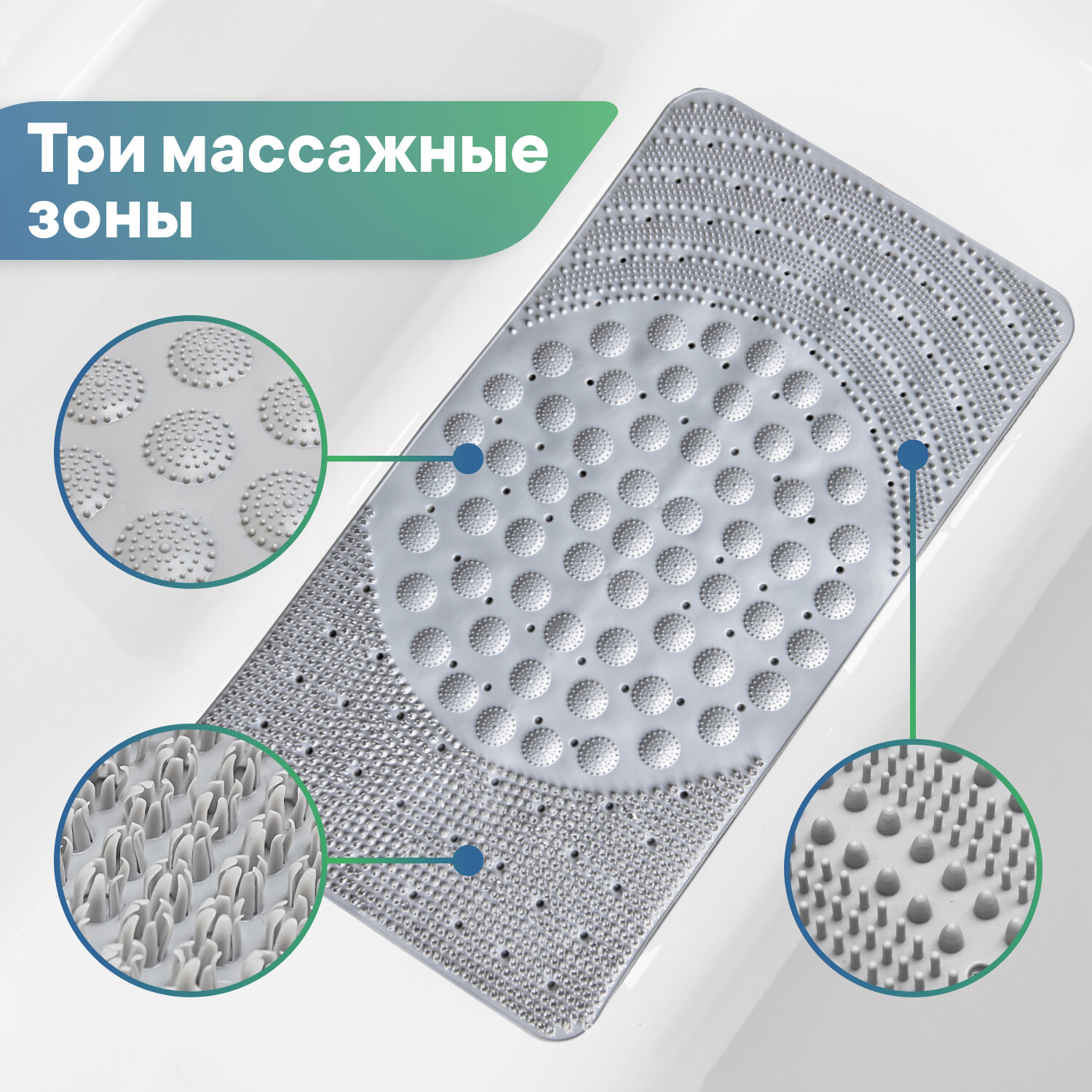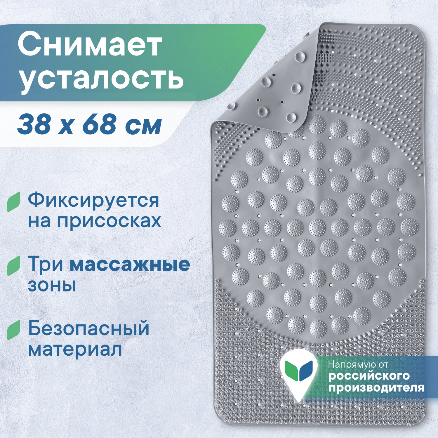 | Особенности | антибактериальный, антискользящий, массажный эффект, присоски |
