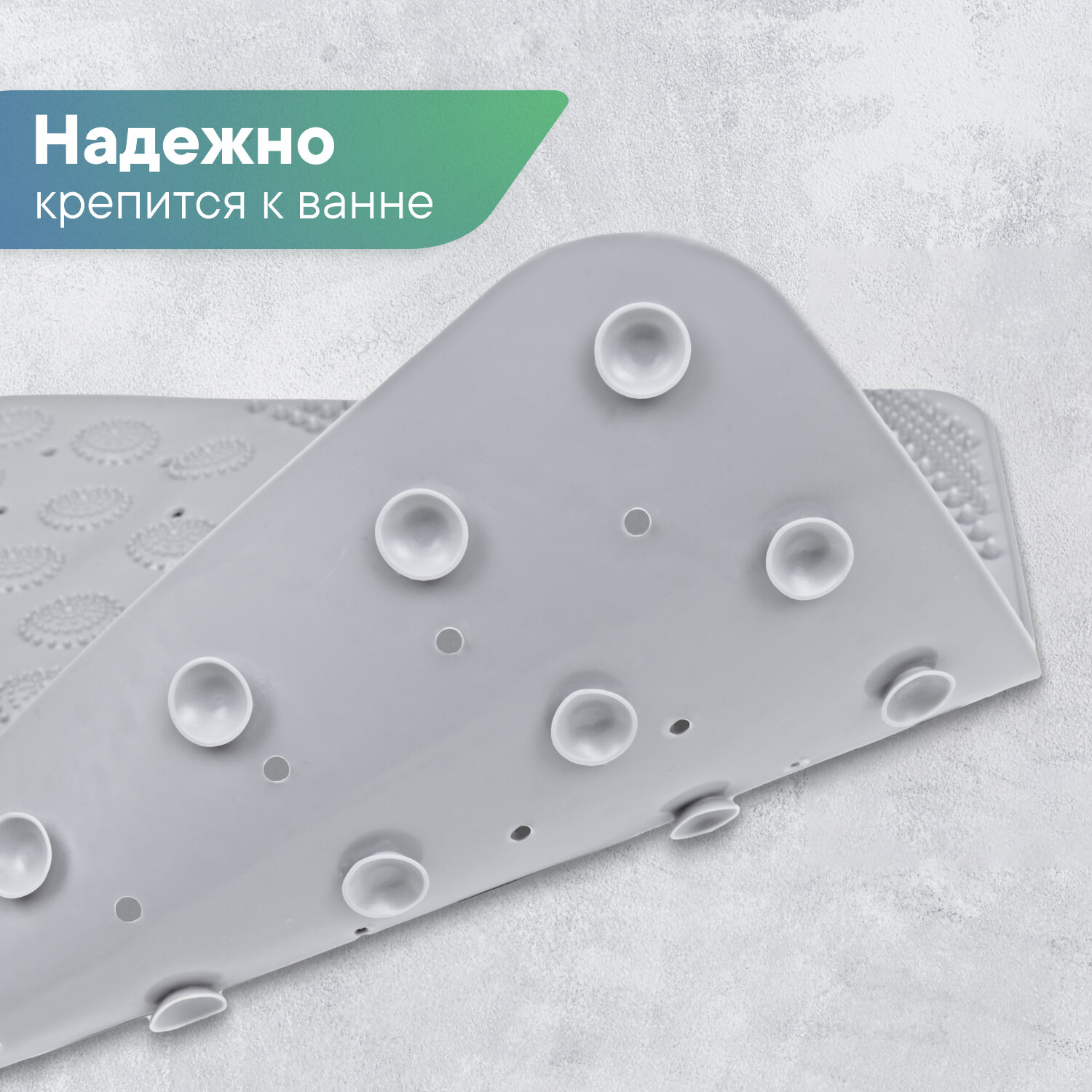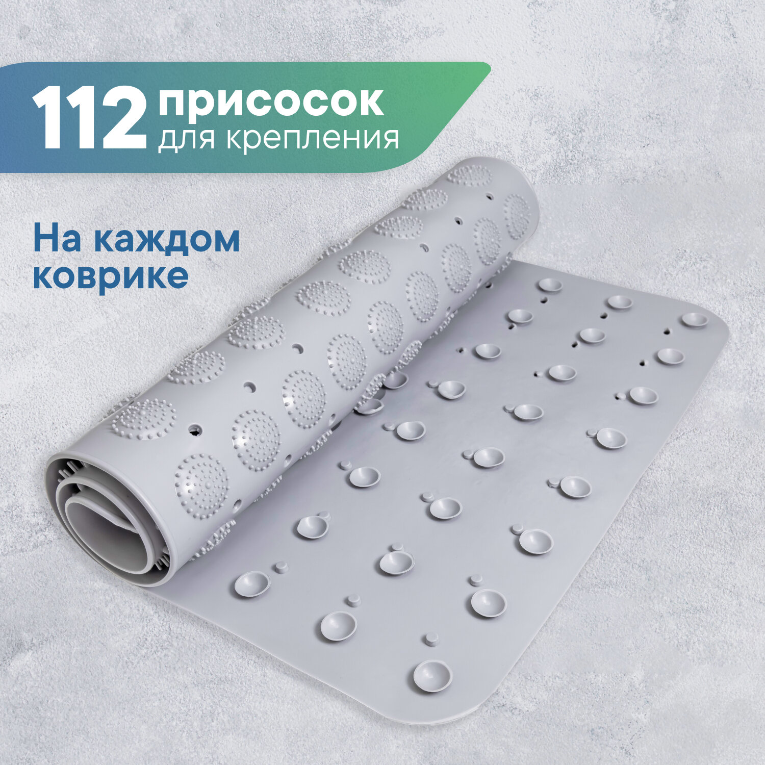 СохранитьКоврик для ванной на присосках VILINA резиновый противоскользящий массажный 38х68 см "Лужайка" однотонный серый интересное: