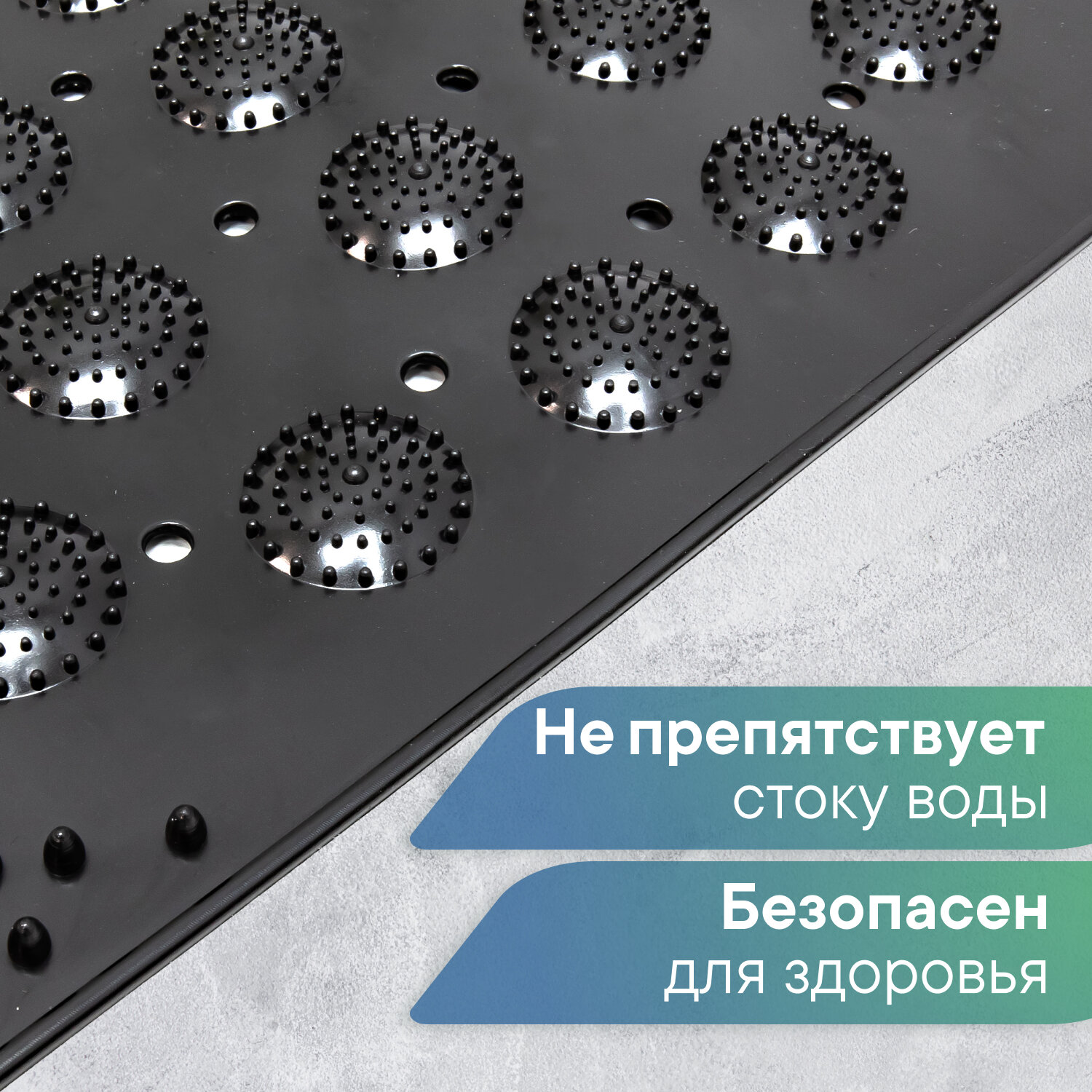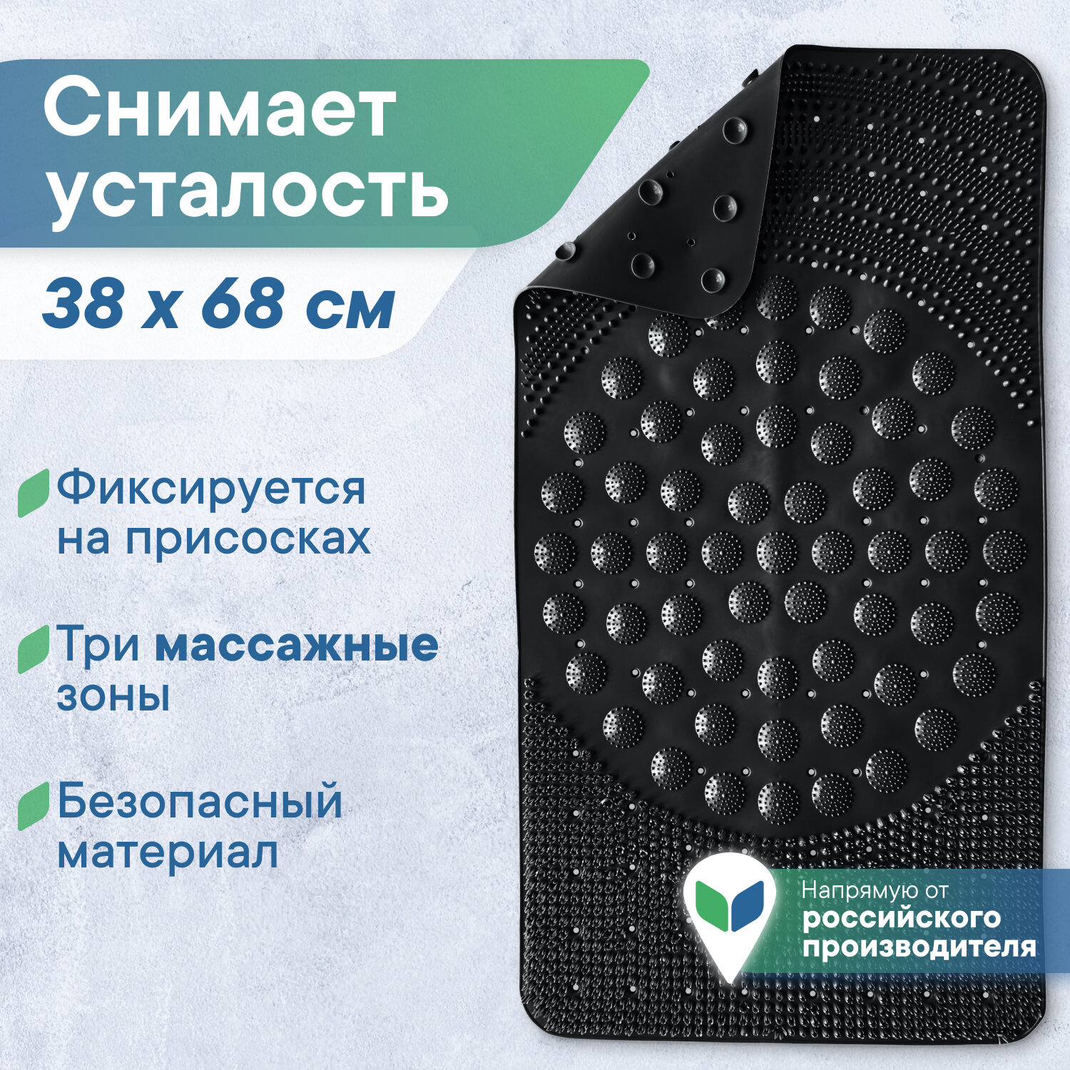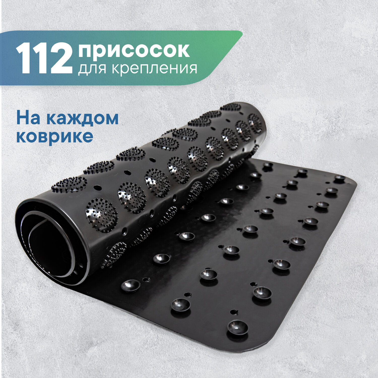 Купить Коврик для ванной на присосках VILINA резиновый противоскользящий массажный 38х68 см "Лужайка" однотонный черный