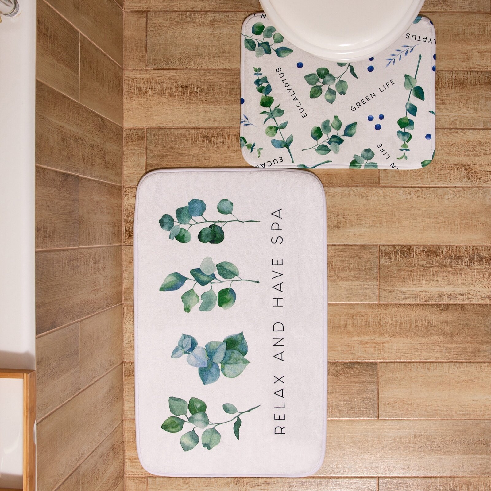 Купить Набор ковриков для ванной Этель "Эвкалипт" 2 шт, 80х50 см, 50х40 см, велюр