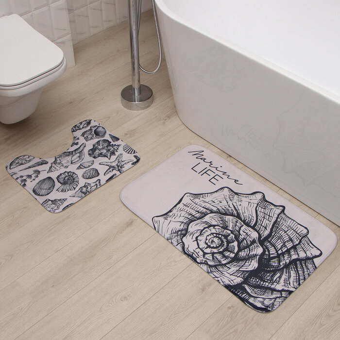 Купить Набор ковриков для ванной Этель "Marine life" 2 шт, 80х50 см, 50х40 см, велюр