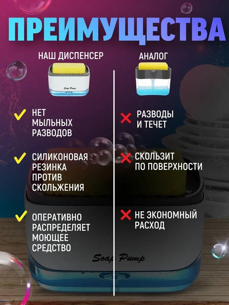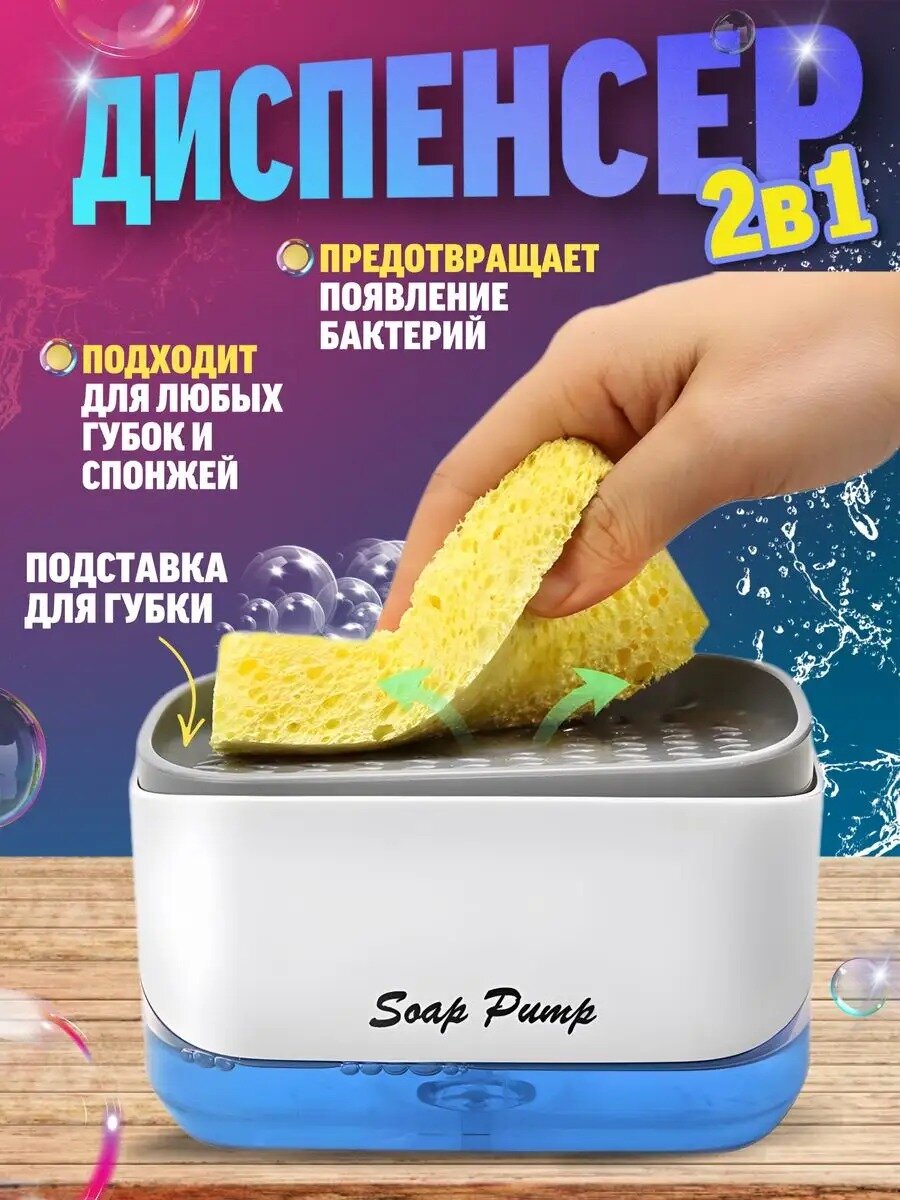 Диспенсер для жидкого мыла с губкой для кухни / дозатор