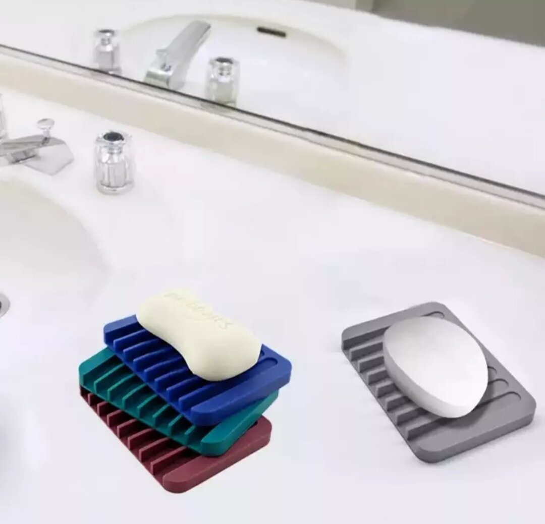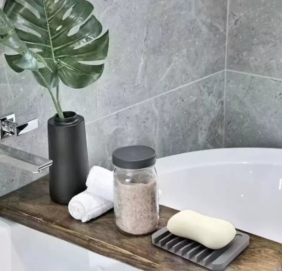 Силиконовая мыльница со сливом для воды удлиненная серая
