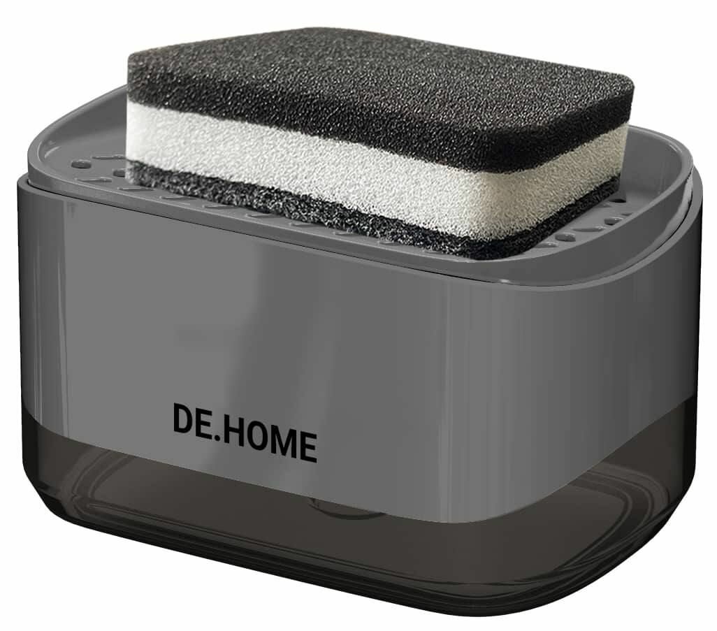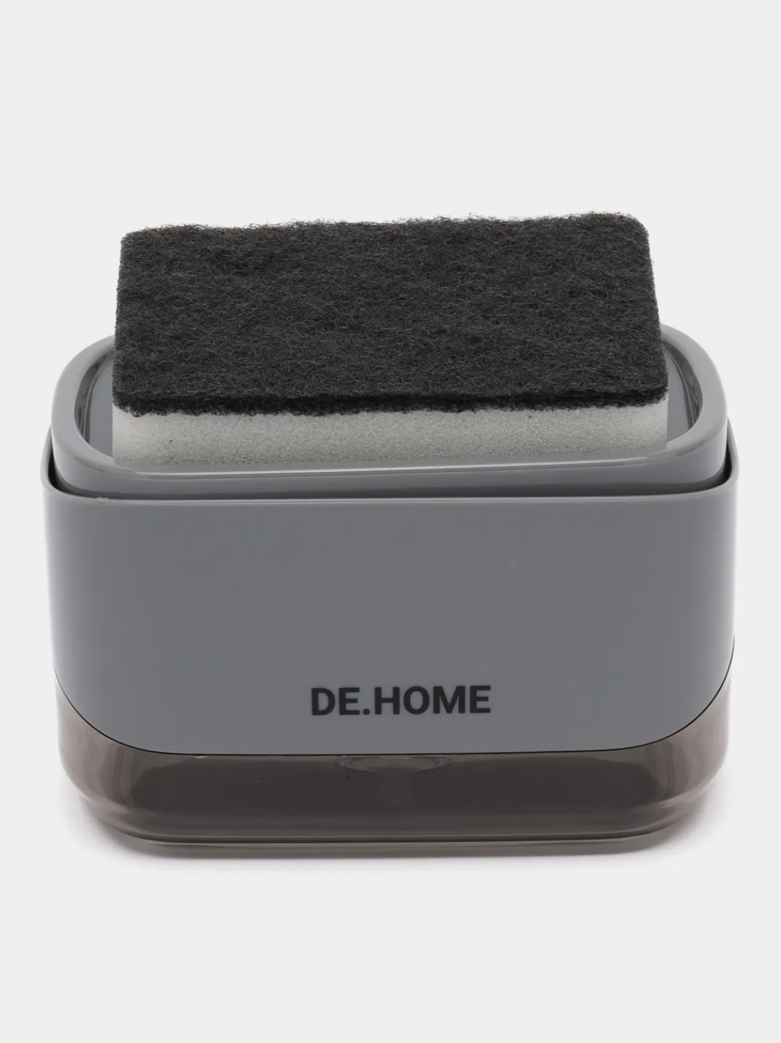 Купить DE.HOME Диспенсер для моющего средства с губкой, дозатор для жидкого мыла, 350 мл, серый