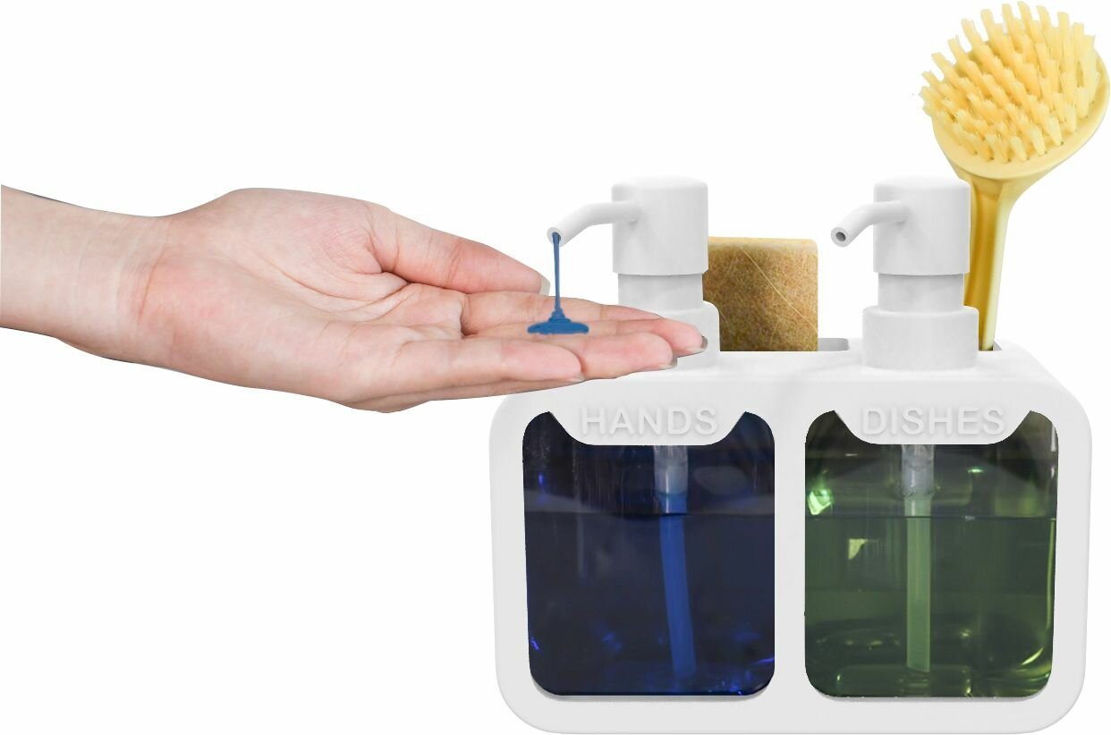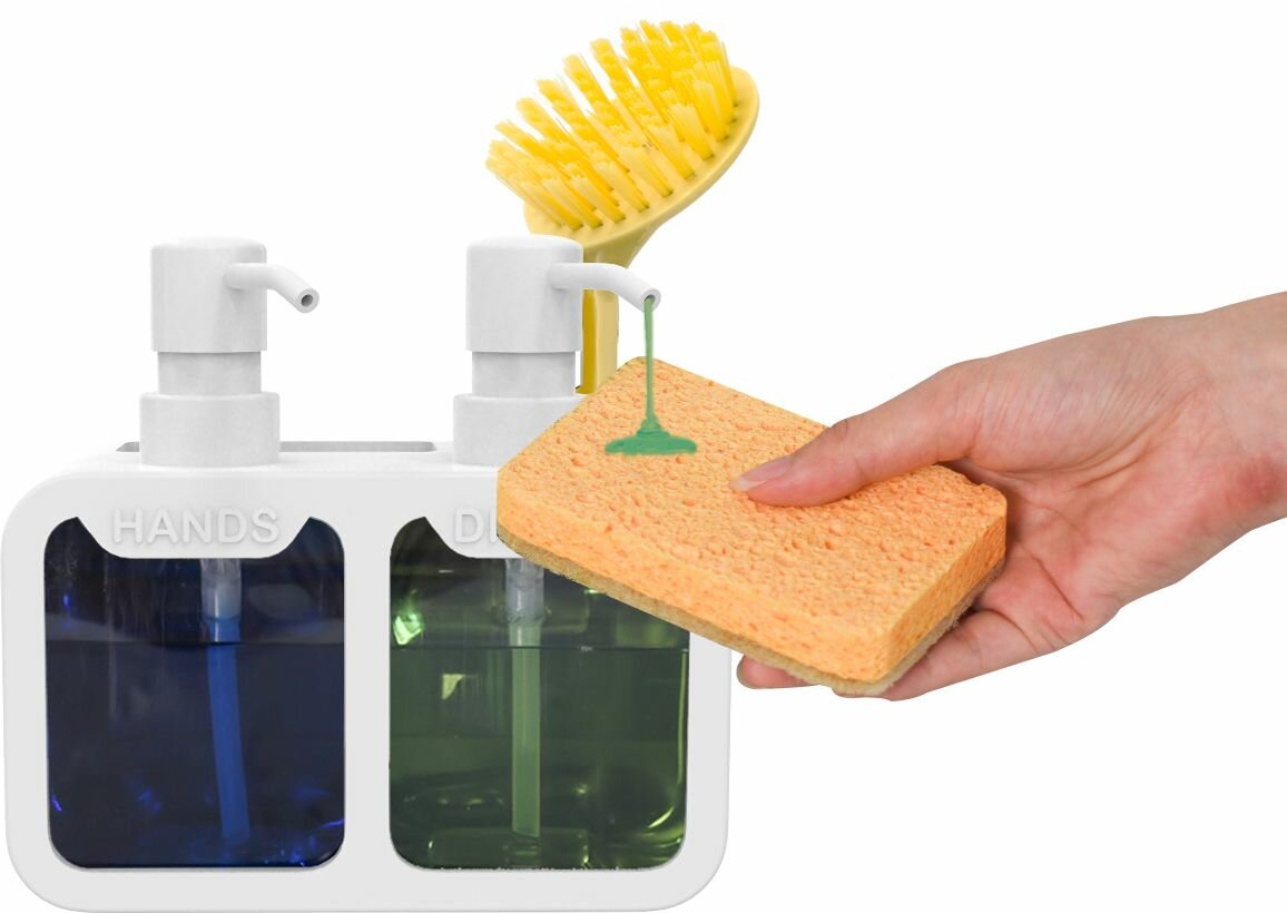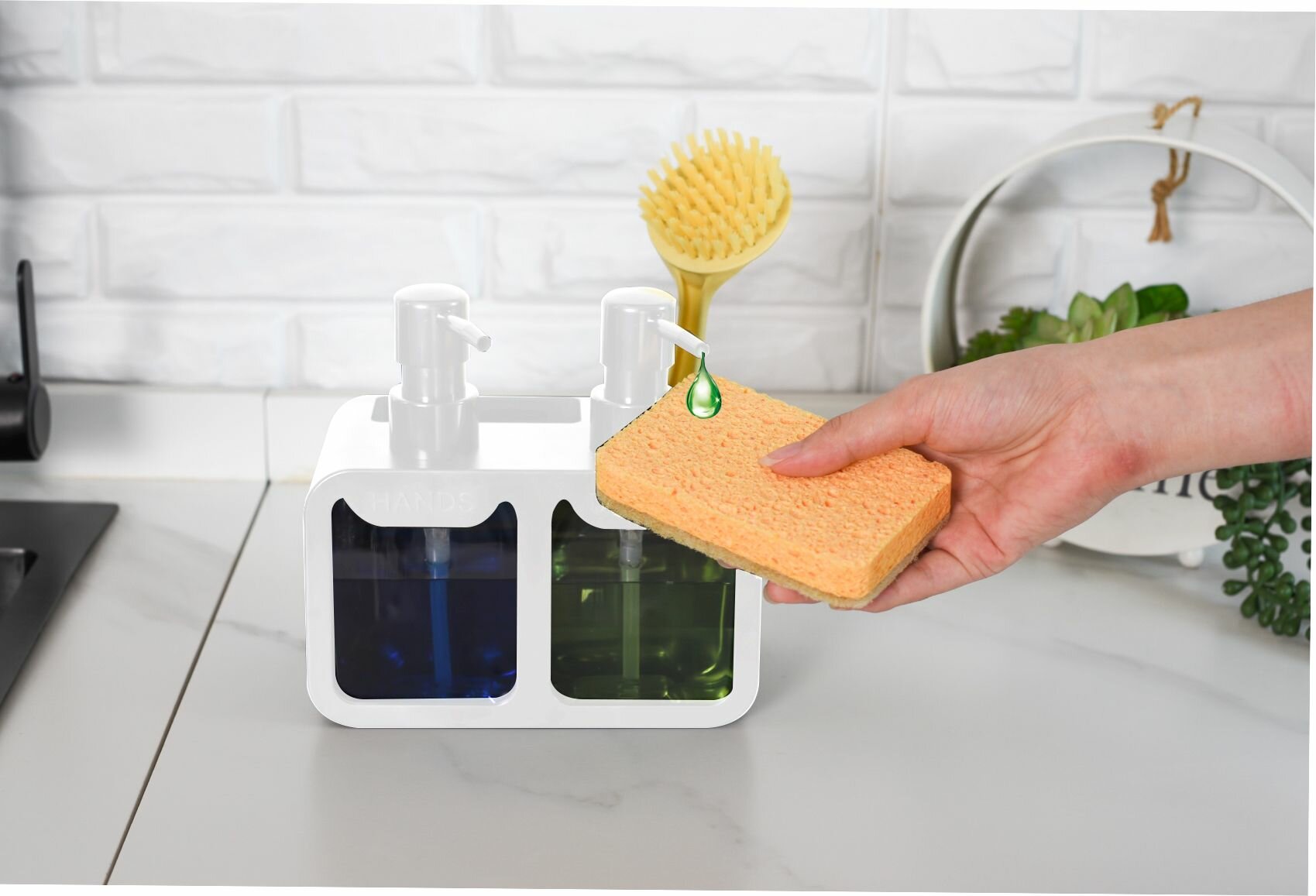 DE.HOME Двойной диспенсер для моющего средства с губкой и дозатор для жидкого мыла, с губкой, белый