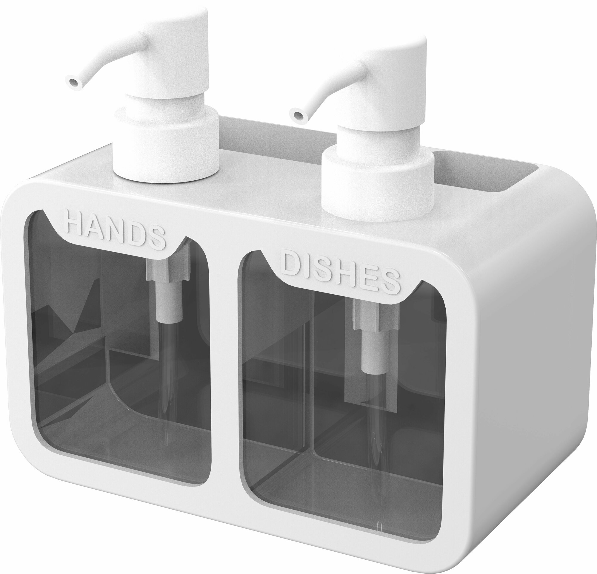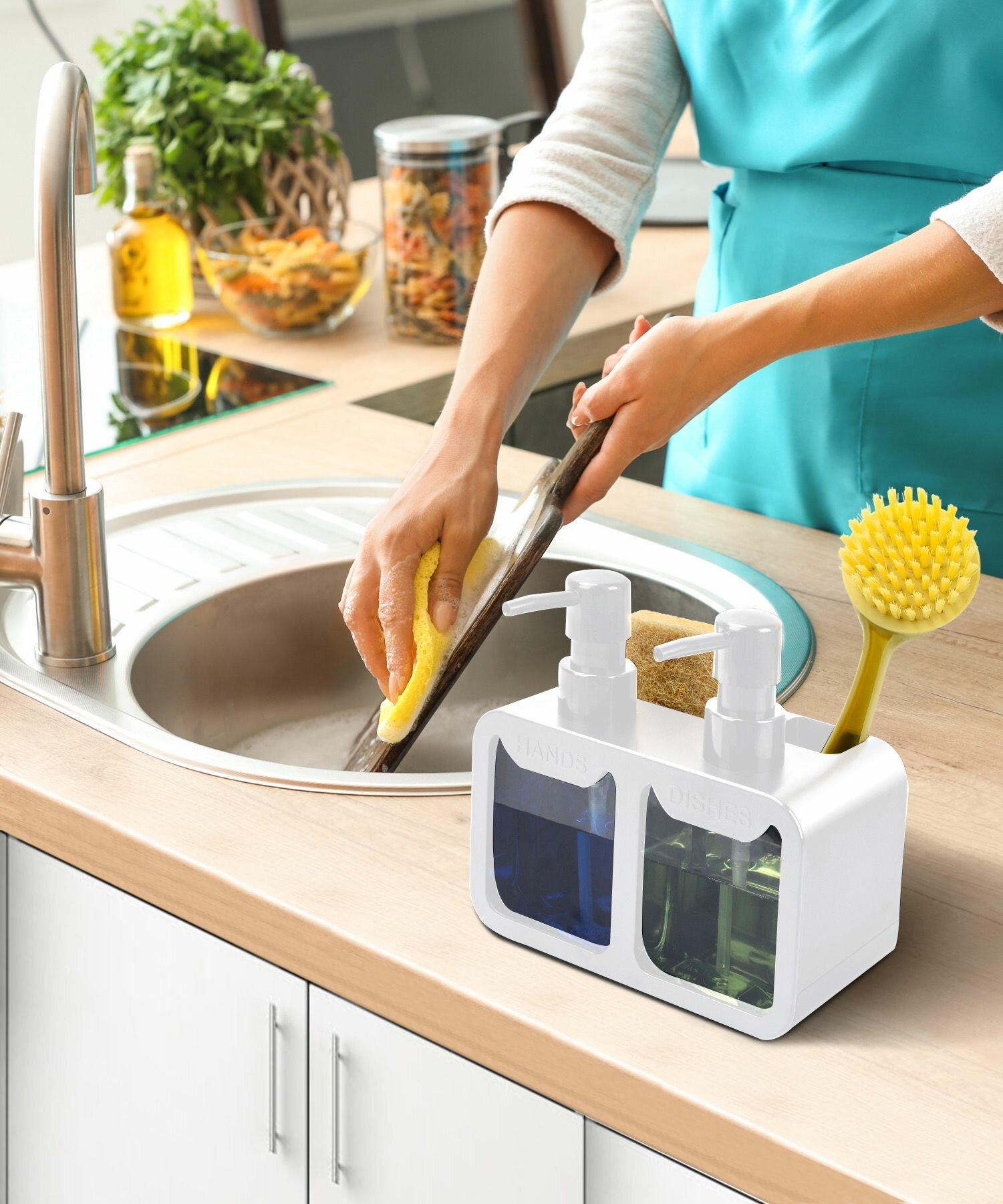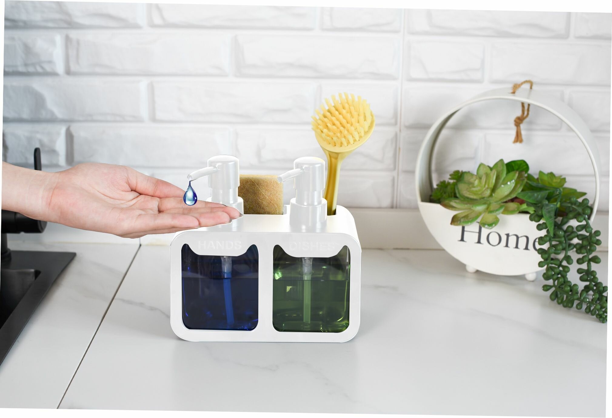 DE.HOME Двойной диспенсер для моющего средства с губкой и дозатор для жидкого мыла, с губкой, белый