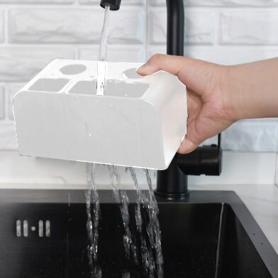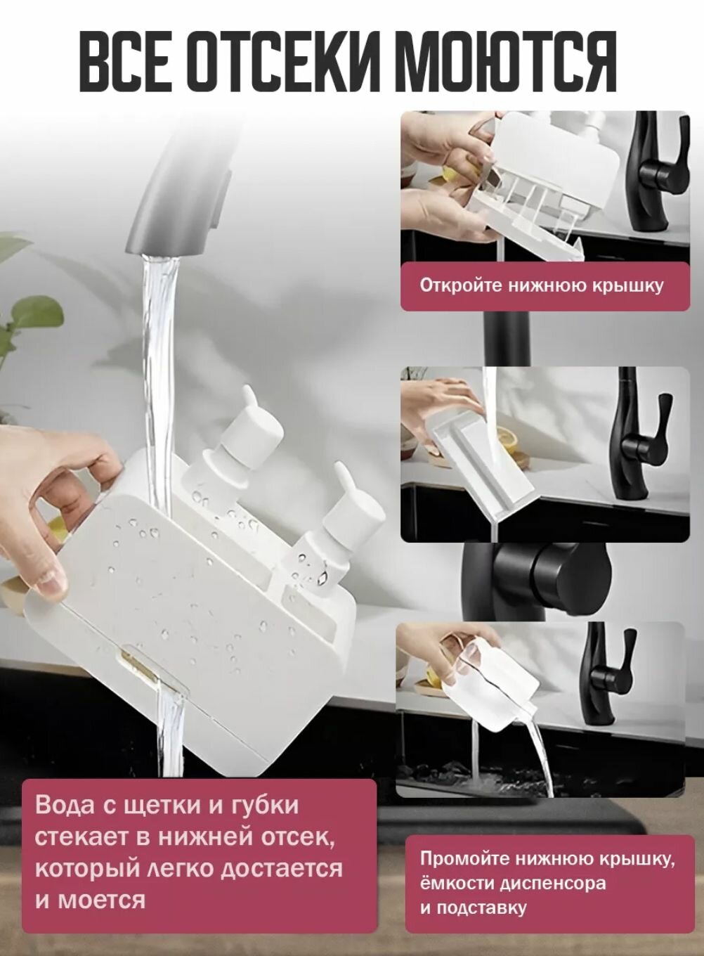 DE.HOME Диспенсер для моющего средства и дозатор для жидкого мыла 4 в 1, с губкой, белый