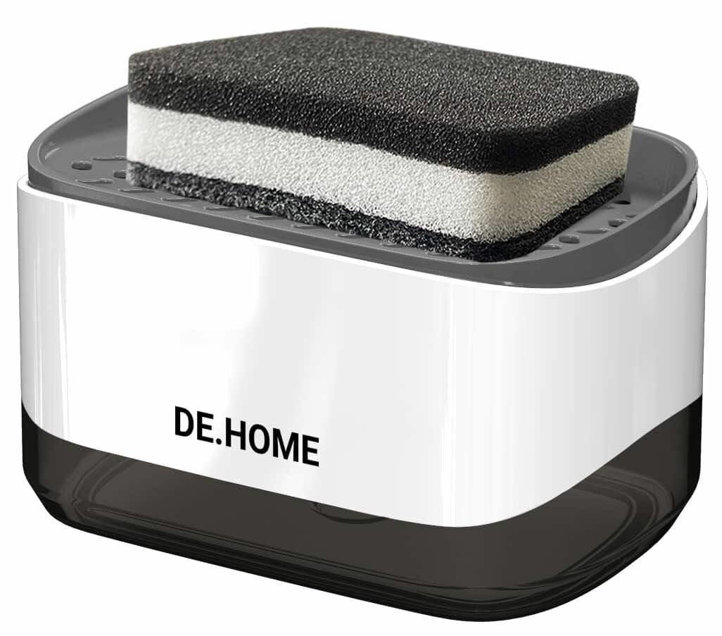 Купить DE.HOME Диспенсер для моющего средства с губкой, дозатор для жидкого мыла, 350 мл, белый
