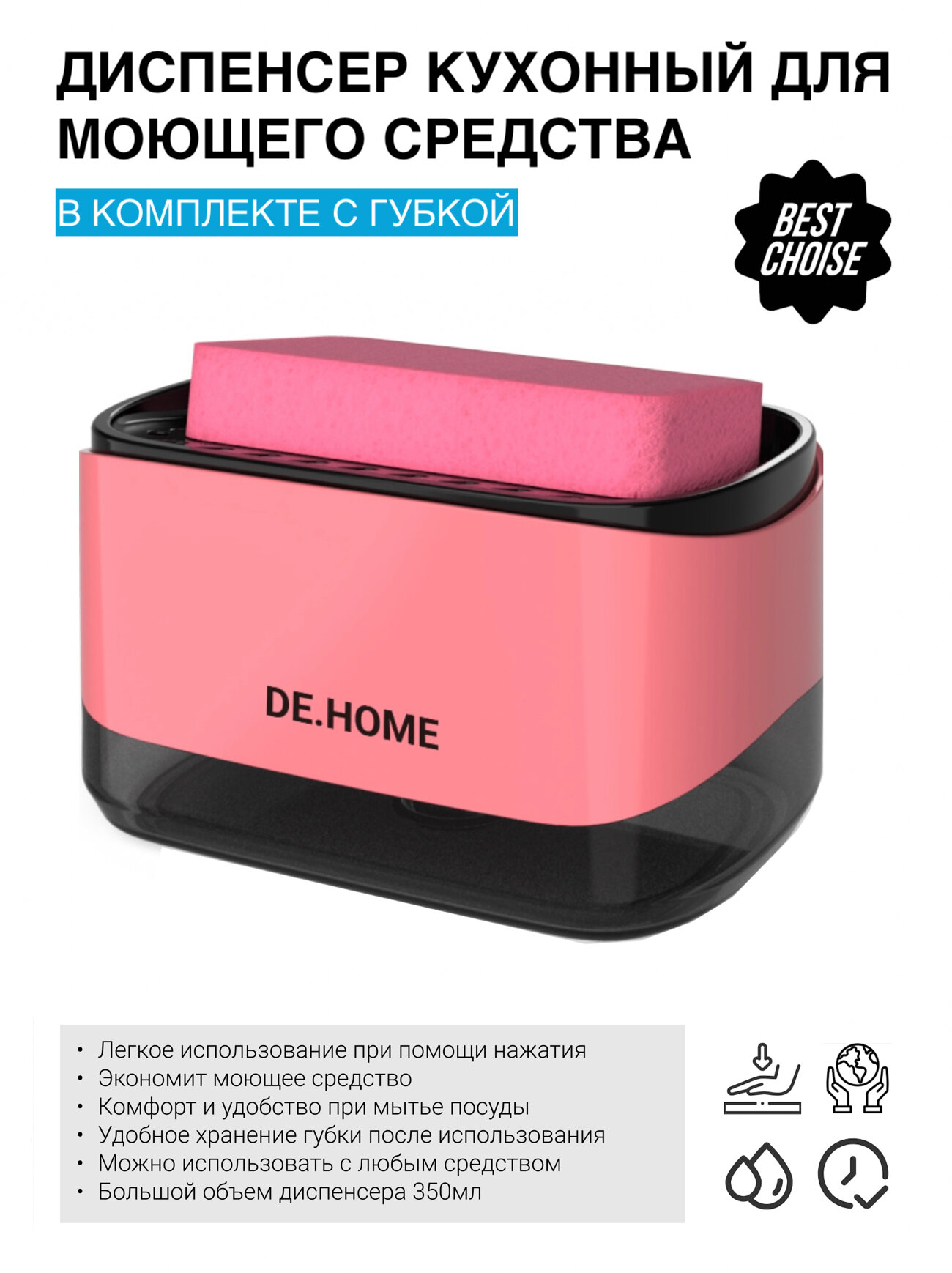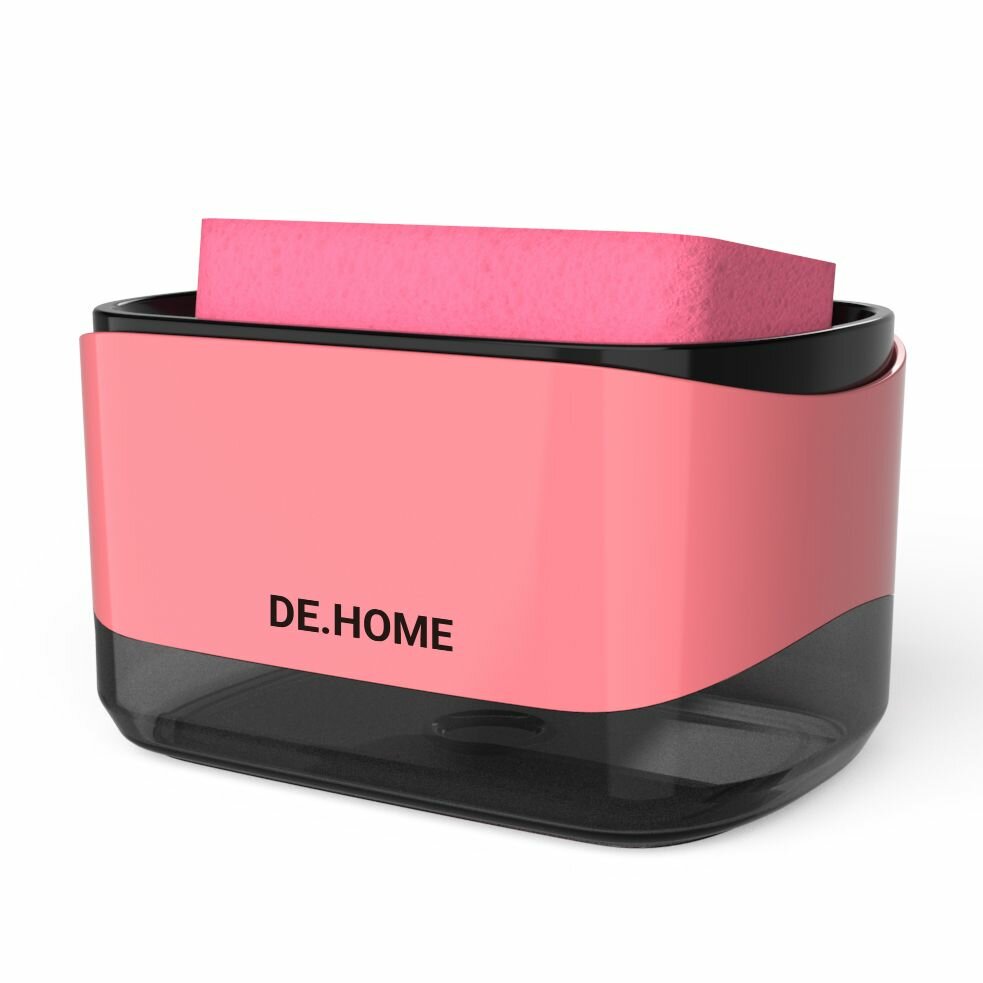 Купить DE.HOME Диспенсер для моющего средства с губкой, дозатор для жидкого мыла, 350 мл, розовый